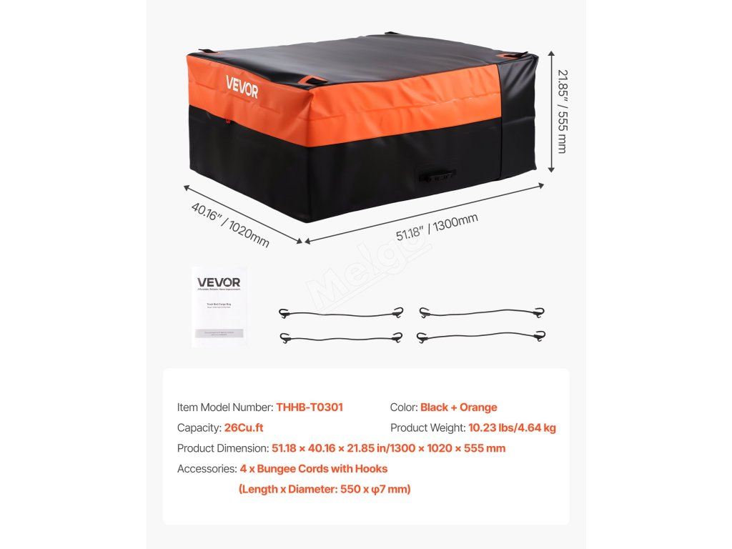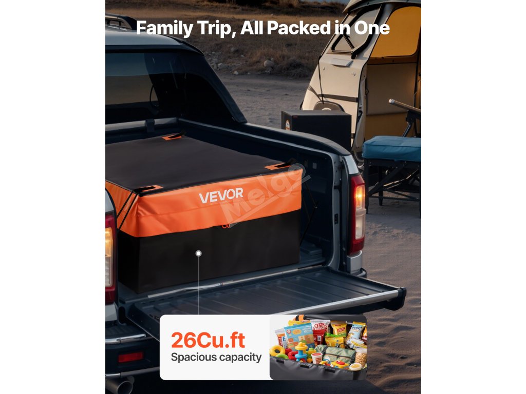 do priestoru s objemom 26 cm3 sa zmestí batožina, stany, kočíky a ďalšie veci. Vodotesná vrstva a utesnené zipsy udržia predmety v suchu v daždi alebo snehu. Dodáva sa so 4φ7 mm bungee šnúrami s háčikmi na bezpečné pripevnenie. Skladá sa na jednoduché uskladnenie. Prispôsobený dizajn vám nebude brániť vo výhľade, čo zabezpečí bezproblémové dochádzanie a cestovanie.