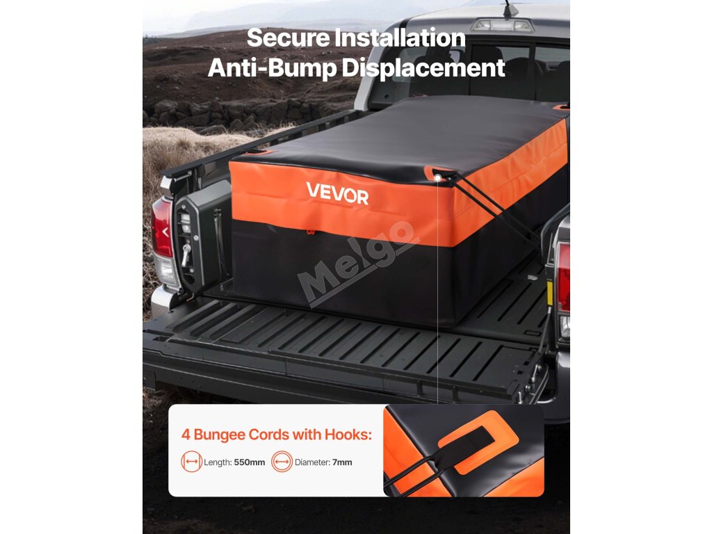 Naša nákladná taška pre nákladné vozidlo sa dodáva so 4 bungee šnúrami s háčikmi, ktoré umožňujú jej pevné upevnenie na zadné nosiče automobilov alebo nosiče batožiny rôznych veľkostí a výšok, takže sa nemusíte obávať posunu počas nerovnej jazdy.