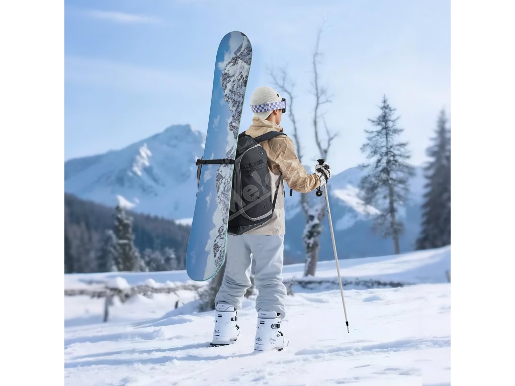 I když máte uvnitř sbalenou helmu, oblečení, brýle a další nezbytnosti, tento batoh na lyžařské boty vám umožní snadno přenášet lyže nebo snowboard.