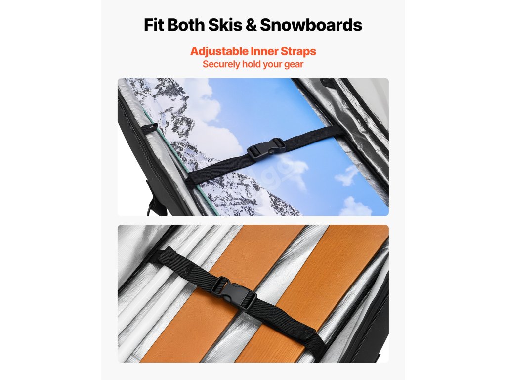 | Vnitřní nastavitelné popruhy | Vhodné pro lyže i snowboardy |