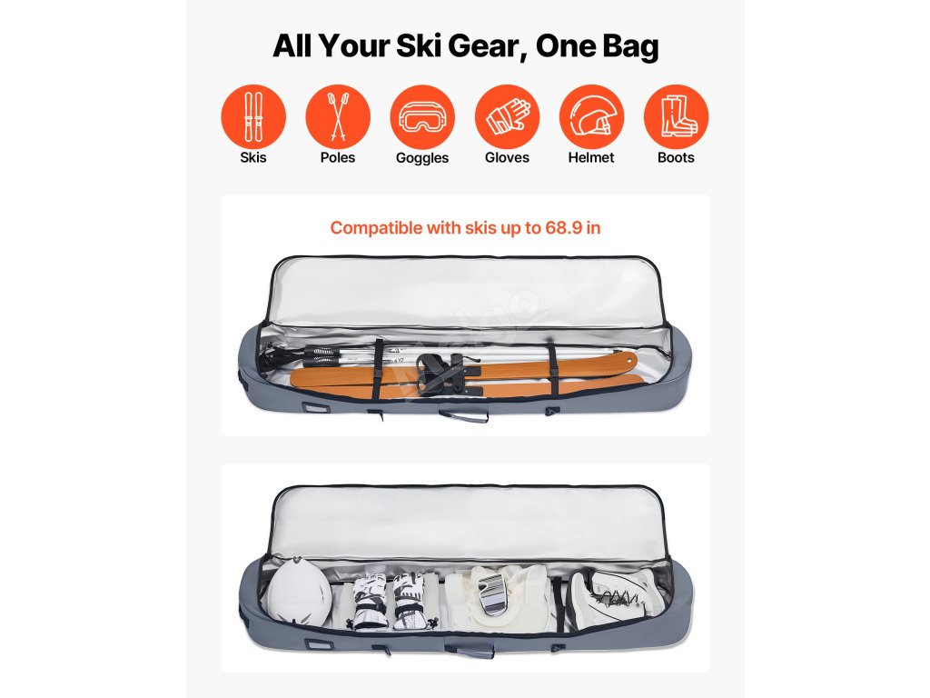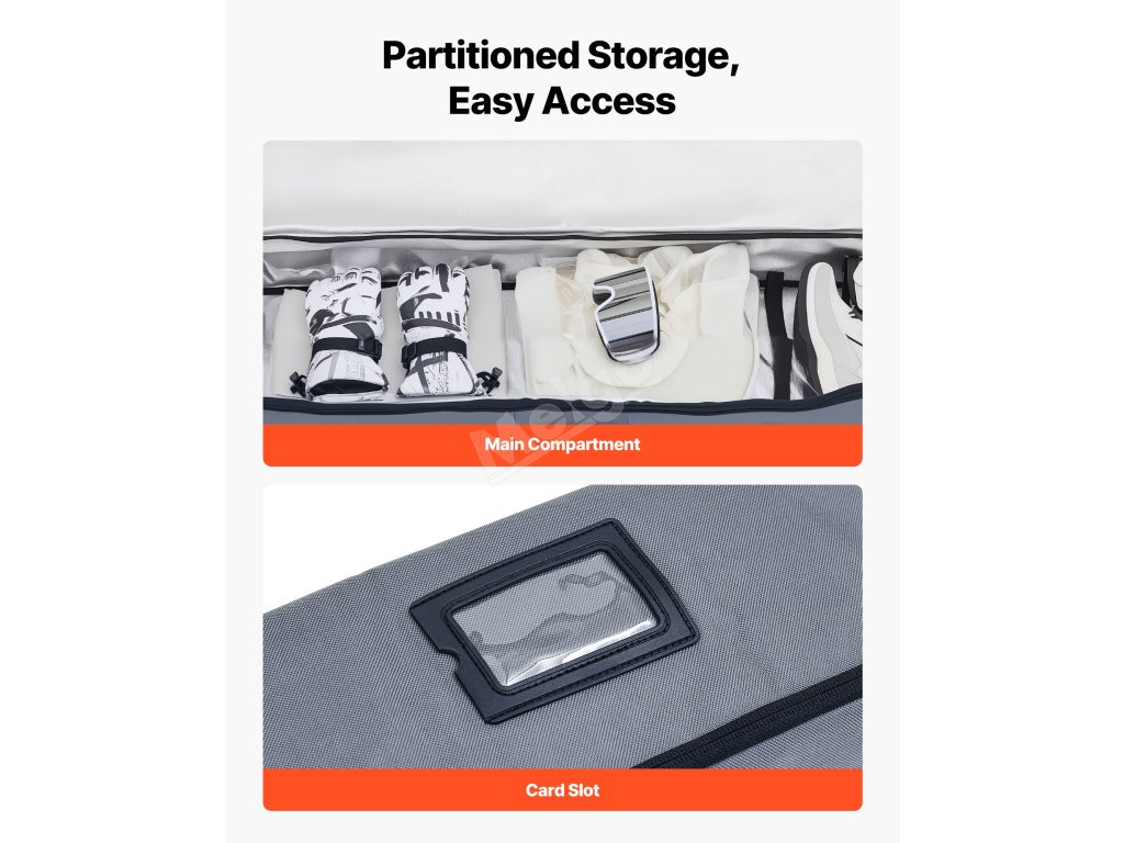Díky prostornému úložnému prostoru a několika přihrádkám, které jsou vyrobeny z voděodolné a opotřebení odolné tkaniny oxford, se naše cestovní taška na snowboard pro cesty letadlem snadno nosí v ruce nebo na rameni. Veškeré lyžařské vybavení se vám vejde do jedné tašky.