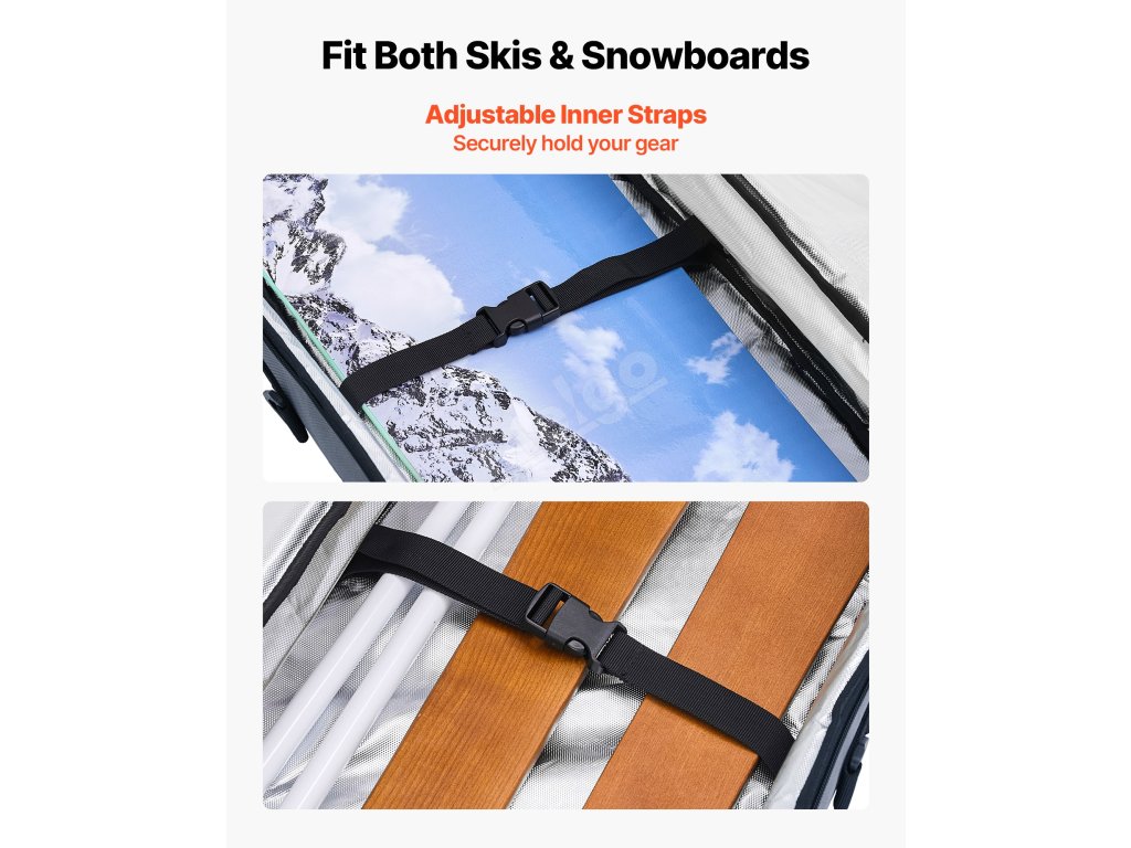 Vnitřní popruhy udrží váš snowboard bezpečně na místě bez poškození. Díky polstrovaným ramenním popruhům, zesíleným zipům a prošívání poskytuje tento vak na snowboard dodatečnou ochranu při cestách letadlem. Ideální pro vytížené lyžaře a snowboardisty.