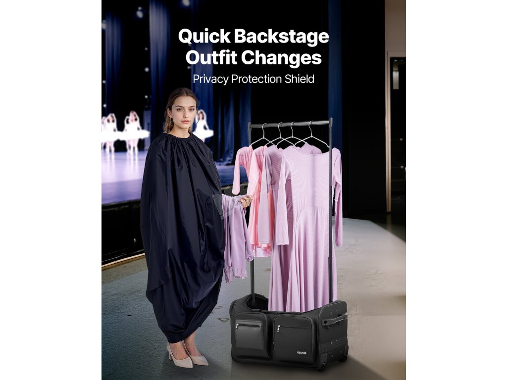 Tato taška na oděvy odolná proti převrácení se promění v přenosnou mini šatní skříň s nastavitelným stojanem pro různé výšky. Má více než 10 kapes, ochranný štít pro rychlou výměnu oblečení a plynulý pohyb díky nabíjení přes USB a prémiovým kolečkům. Odolný voděodolný potah PU100 nabízí dlouhou životnost.