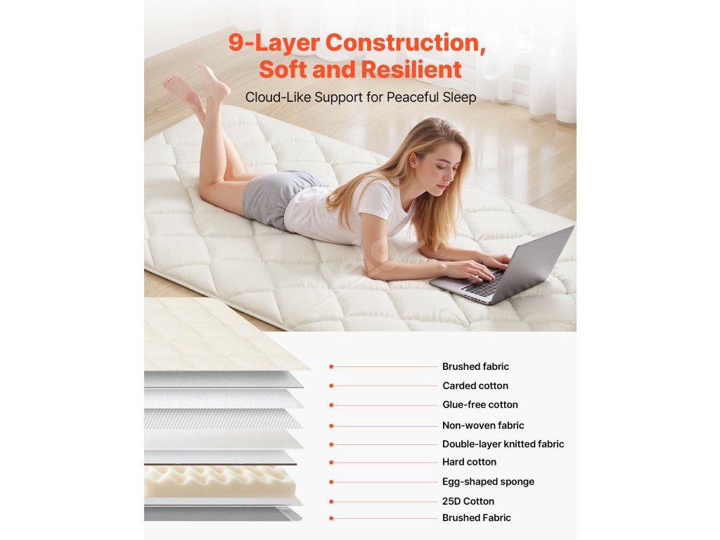 Tato rohož tatami je víc než jen rohož, vytváří osobní spací prostor. Její devítivrstvá struktura rozkládá tlak těla, zabraňuje prověšení a je ideální pro klidný spánek nebo pohodlné cvičení jógy.