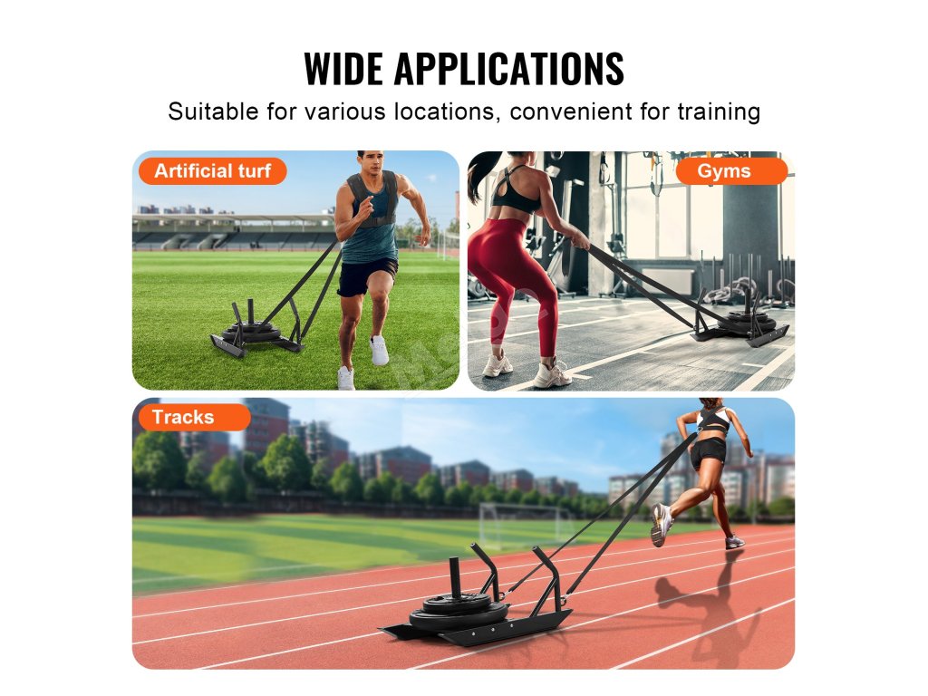 Naše sáně pro rychlostní trénink jsou vhodné do tělocvičen, na umělou trávu, dráhy a různá další místa, kde je trénink pohodlný. Lze je snadno rozložit pro rychlou přepravu nebo skladování.