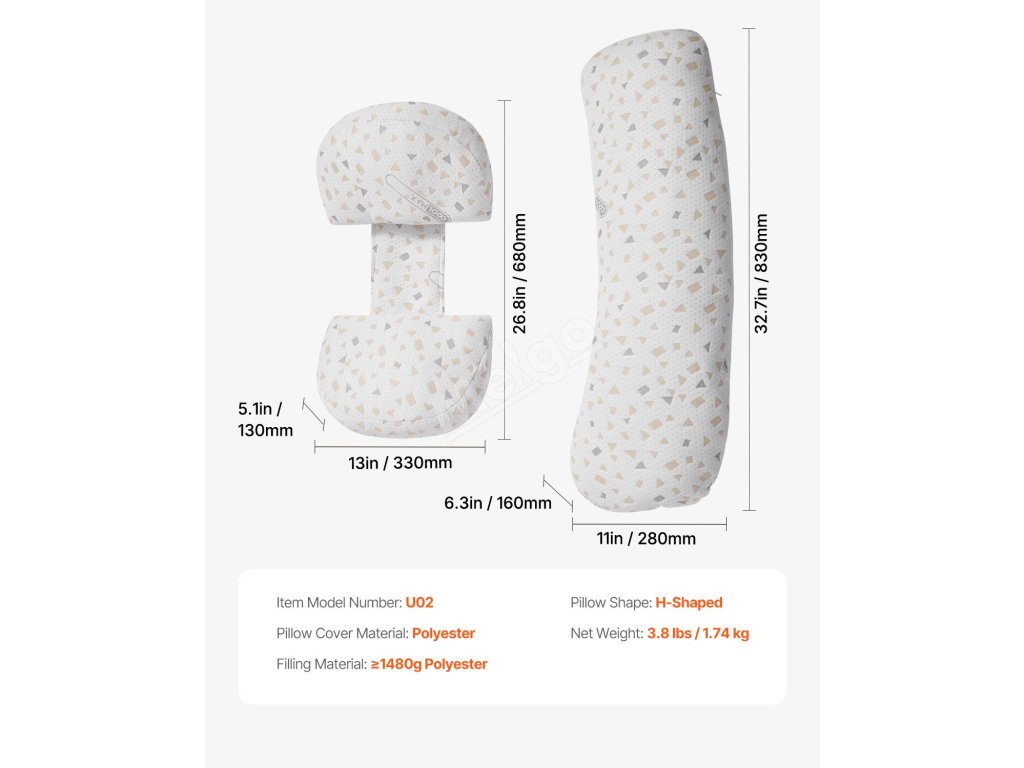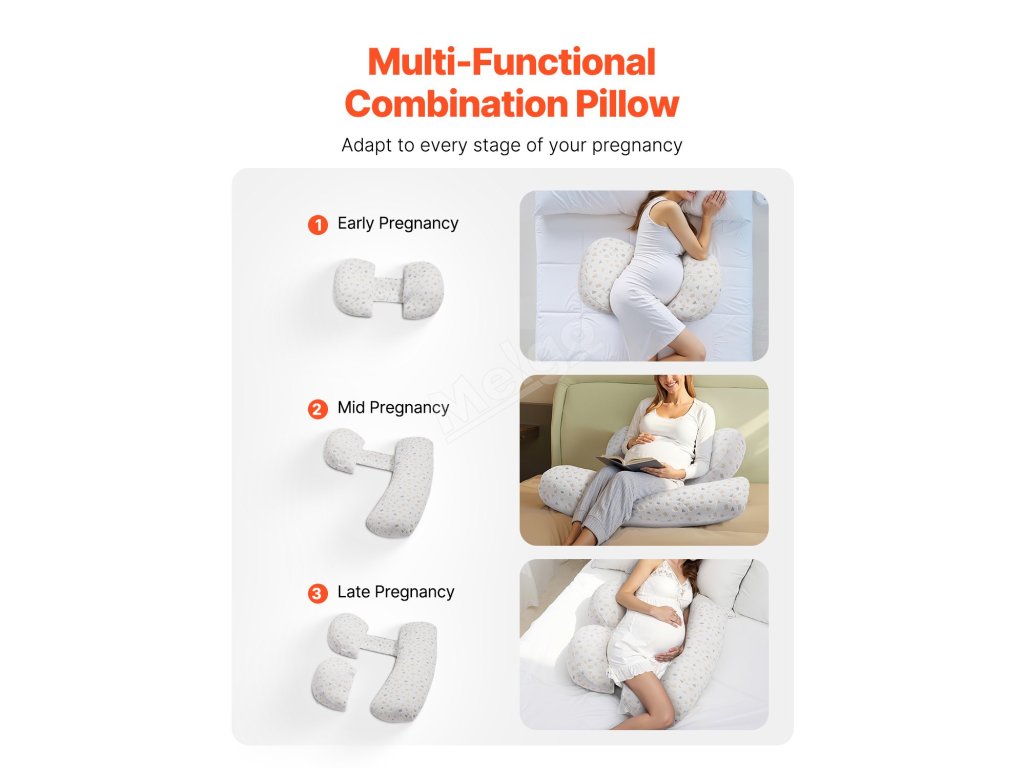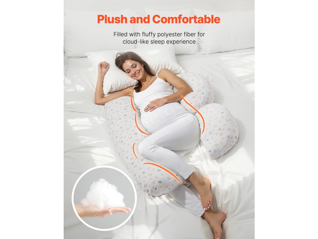 Potah našeho těhotenského polštáře je snímatelný a lze jej prát v pračce, takže čištění je bezproblémové. Jednoduše jej rozepněte, hoďte do pračky a užívejte si pokaždé čerstvý, čistý polštář pro dlouhotrvající pohodlí a komfort.