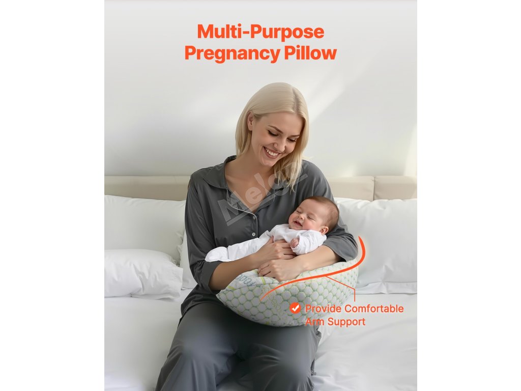 Potah našeho těhotenského polštáře je snímatelný a lze jej prát v pračce, takže čištění je bezproblémové. Jednoduše jej rozepněte, hoďte do pračky a užívejte si pokaždé čerstvý, čistý polštář pro dlouhotrvající pohodlí a komfort.