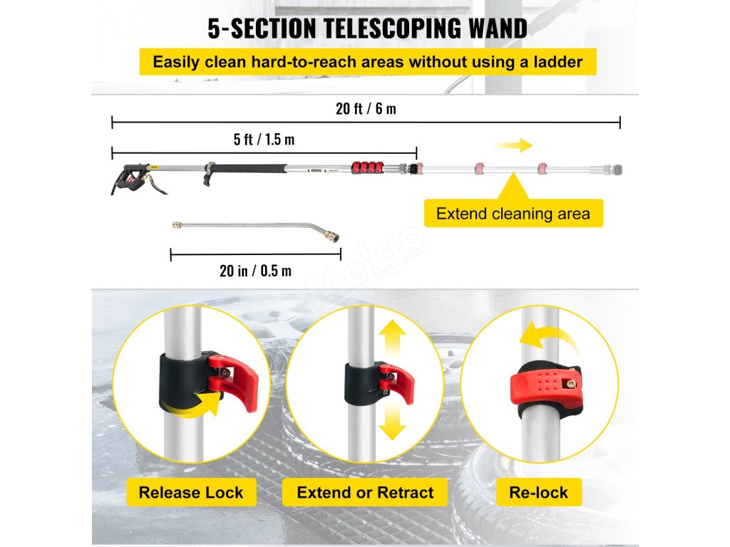 Teleskopická tyč na vysokotlaký čistič 609.6 cm, 5 sekcí, 4000 psi