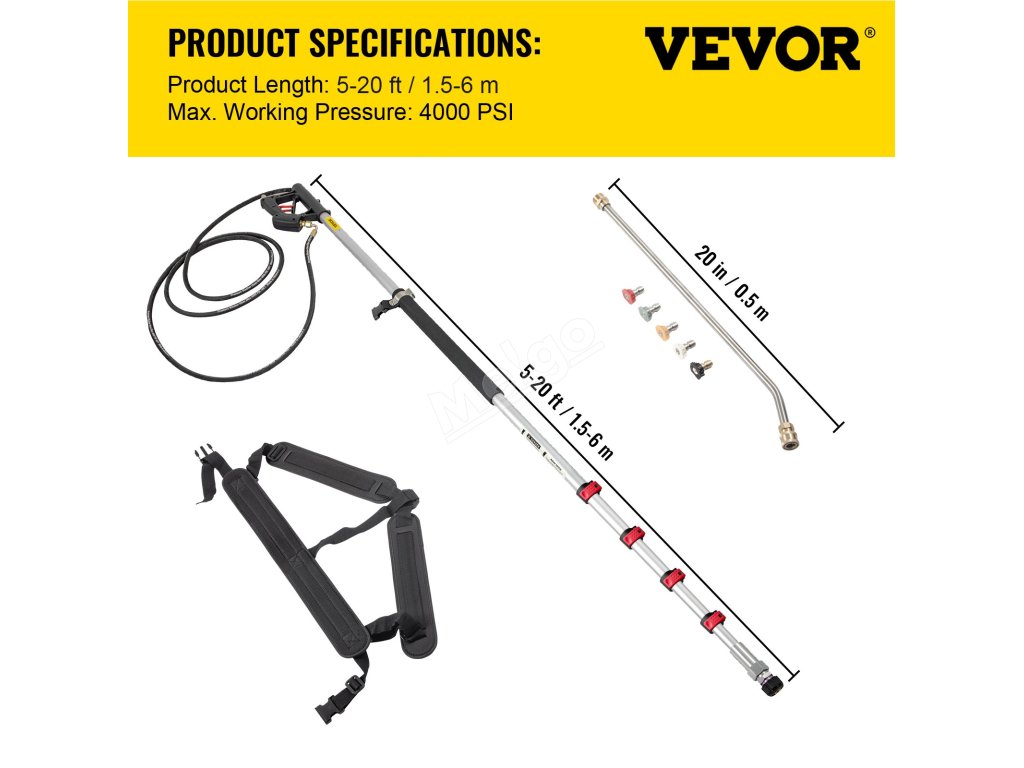 Nabízíme vám vysoce kvalitní teleskopickou tyč, která splní vaše požadavky na venkovní úklid. Díky lehkému materiálu a konstrukci opěrného popruhu dosáhnete kompletního úklidu bez únavy. Už vás nebaví natahovat se do výšky a trápí vás úklid, který vaše běžná hadice nezvládne? Pak už nemusíte hledat dál. Naše teleskopická prodlužovací tyč zvládne práci během několika minut. Na co ještě čekáte? Pusťte se do práce.