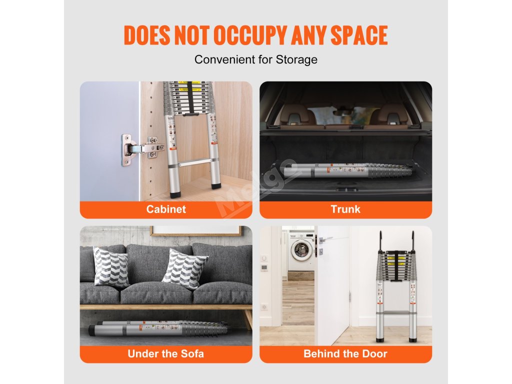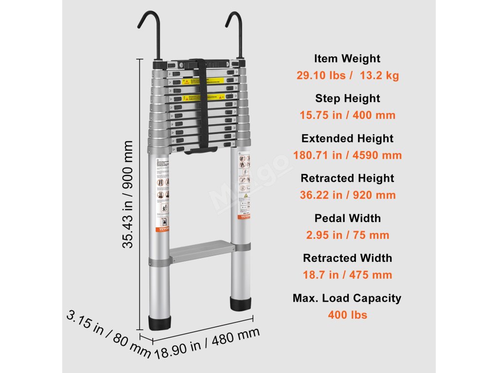Teleskopický hliníkový žebřík 457.2 cm víceúčelový se stupni