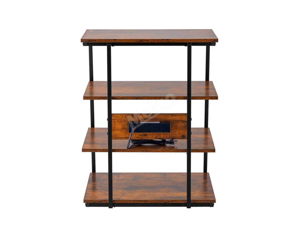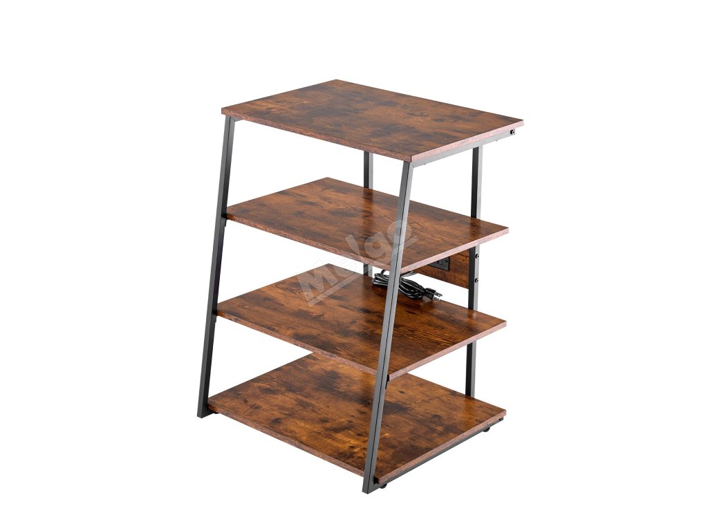 Televizní rohový stojan 4 police, zásuvky a led, nastavitelné, hnědý