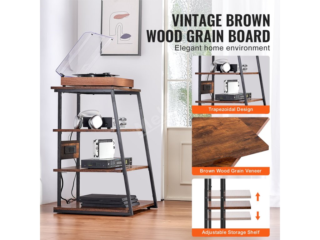 Tento stojan na stereofonní skříň s designem vintage hnědého dřeva dodává eleganci a doplňuje různé styly interiérů, čímž umocňuje retro atmosféru každé místnosti.