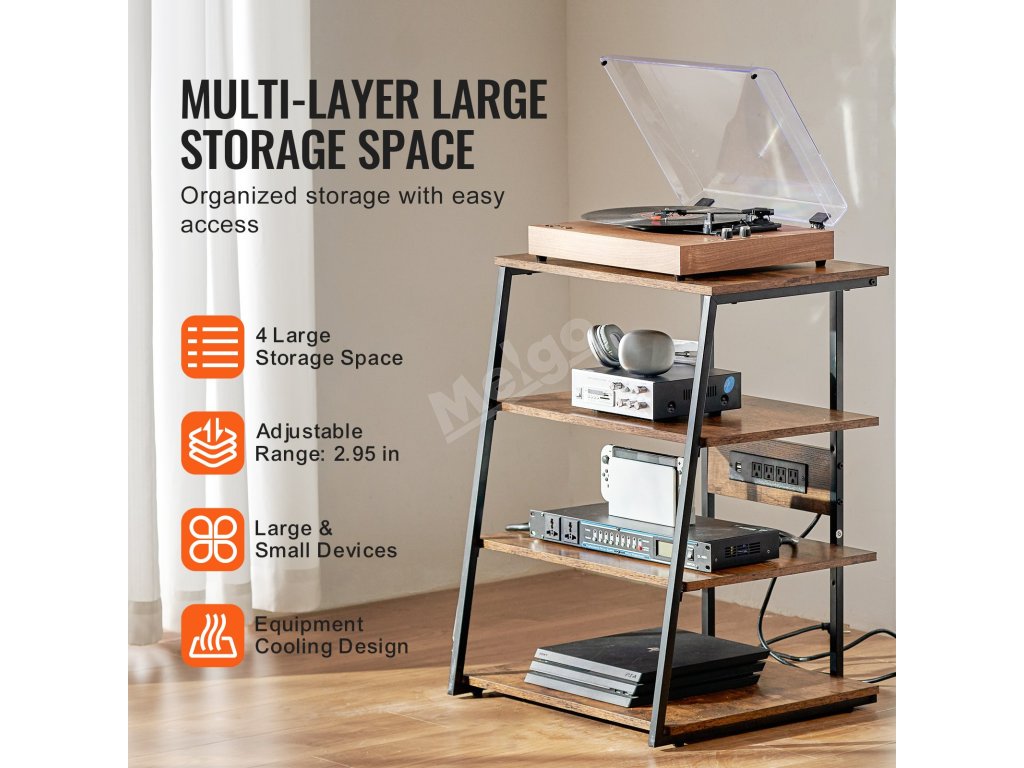 Výška polic je nastavitelná až do 2,95 palce, což umožňuje umístit různá audio zařízení a přizpůsobit uspořádání úložného prostoru svým potřebám.