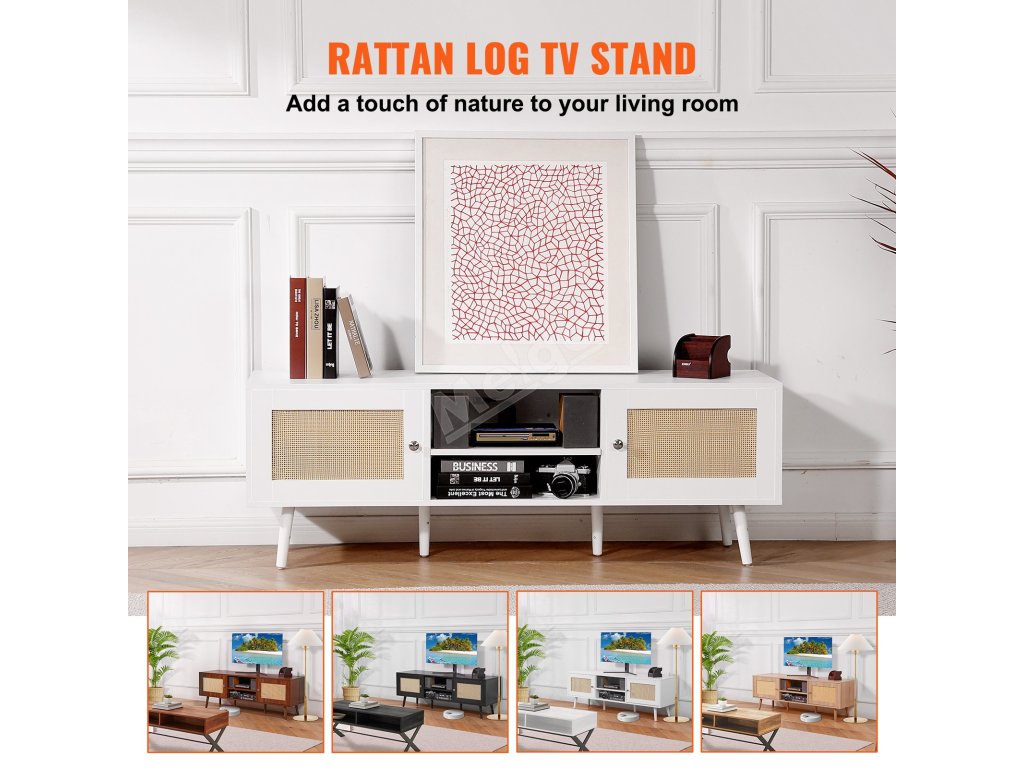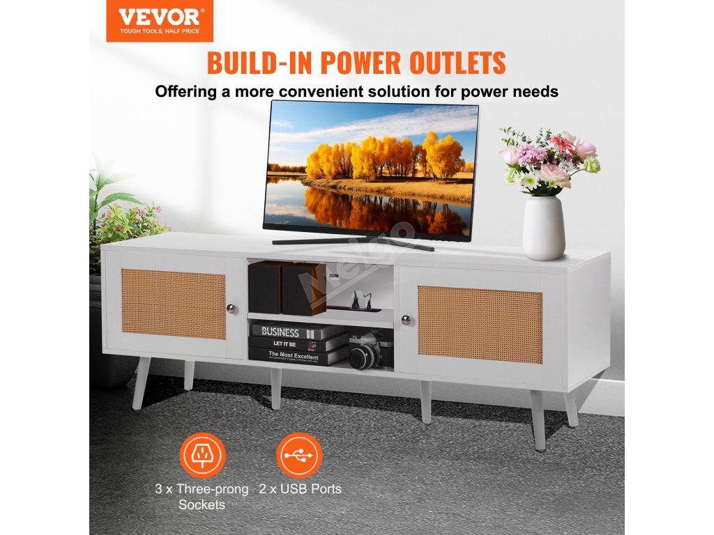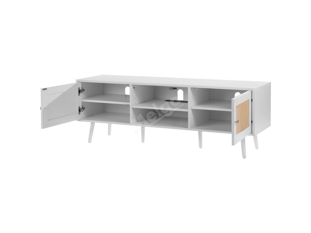 Televizní stolek pro 65 inch, ratanová dvířka, zásuvka a usb, bílý
