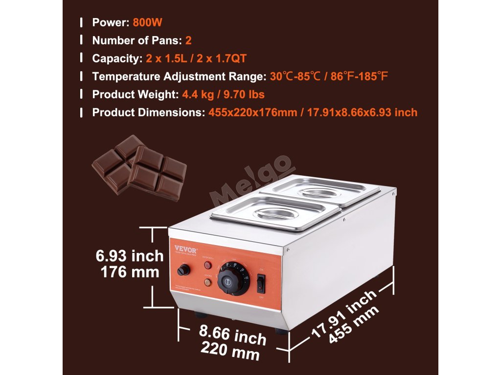 Toto čokoládové fondue je vhodné zejména k ohřívání a rozpouštění kostek čokolády, kostek másla, smetany, mléka a dalších surovin. Lze jej použít pro různé příležitosti, jako jsou rodinné oslavy, hotelové restaurace a pekárny.