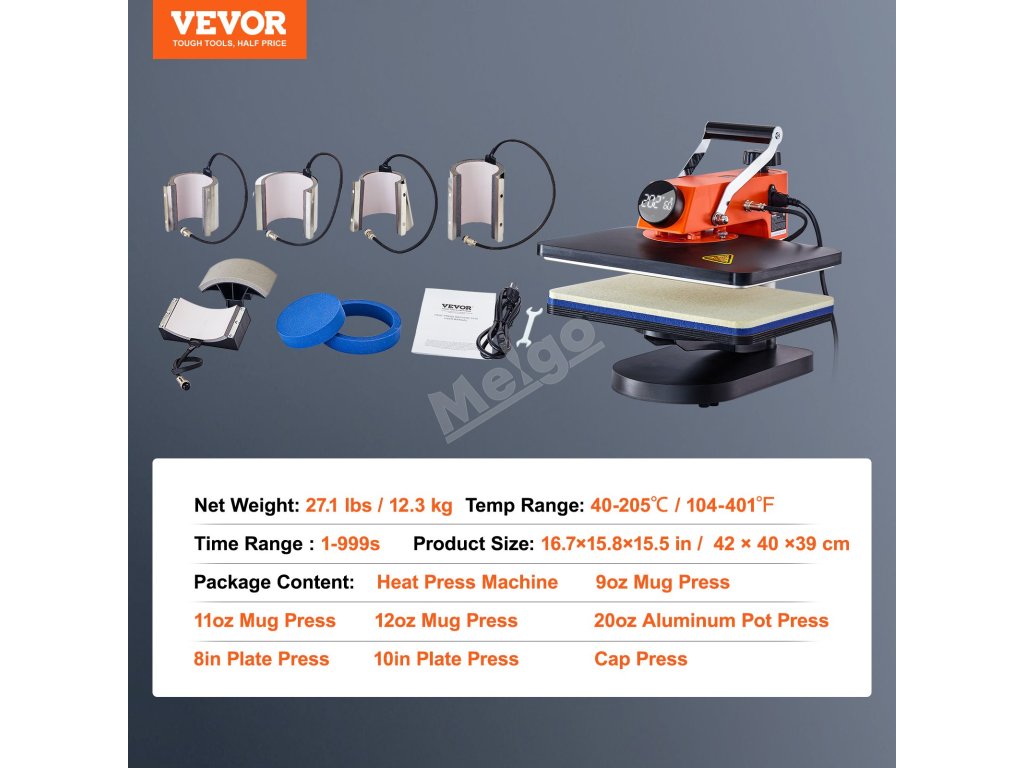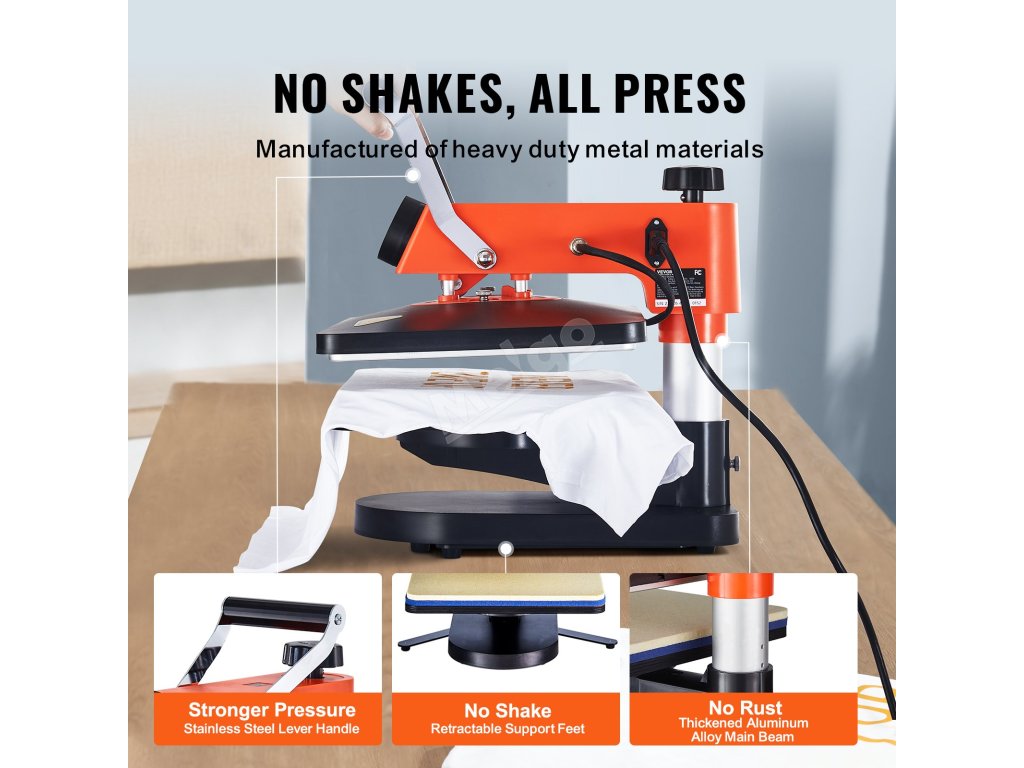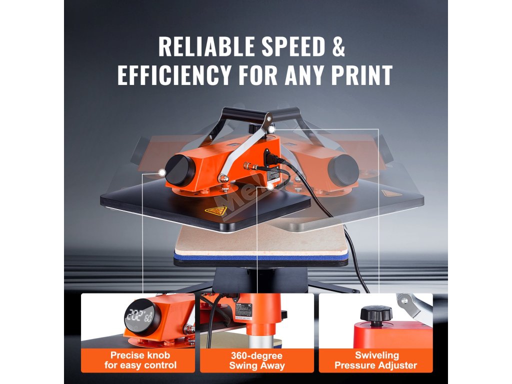 Tepelný lis 8 v 1 12×15 multifunkční vyklápěcí s 360° rotací