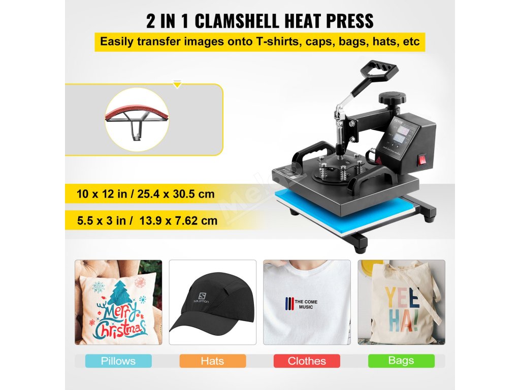 Teplotní lis 2v1 klapkový 10×12inch/25×30cm, teflon, lcd ovládání