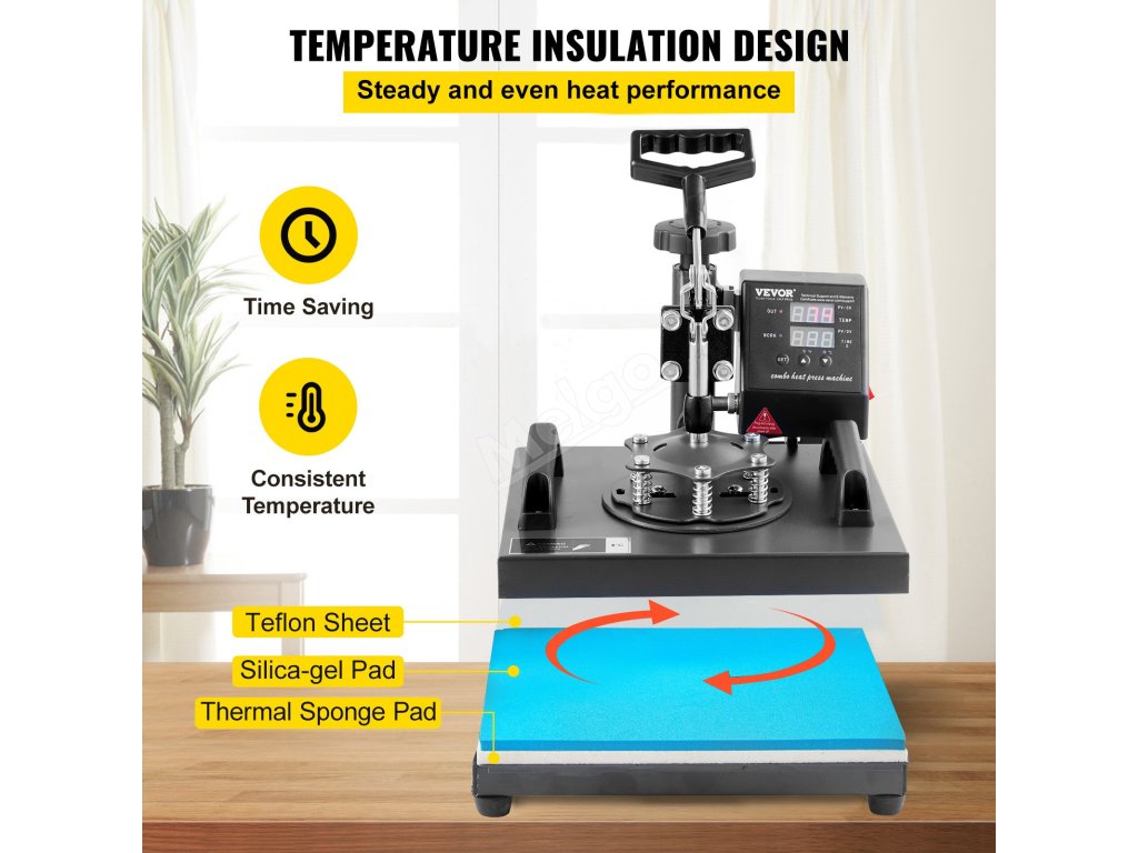 Tento sublimační lis o rozměrech 10 x 12 palců poskytuje spolu s lisem na zakřivené uzávěry dostatečný prostor pro základní procesy tepelného lisování. Kromě toho zesílená deska zvyšuje lepší udržení tepla a zajišťuje dobrou tepelnou konzistenci.