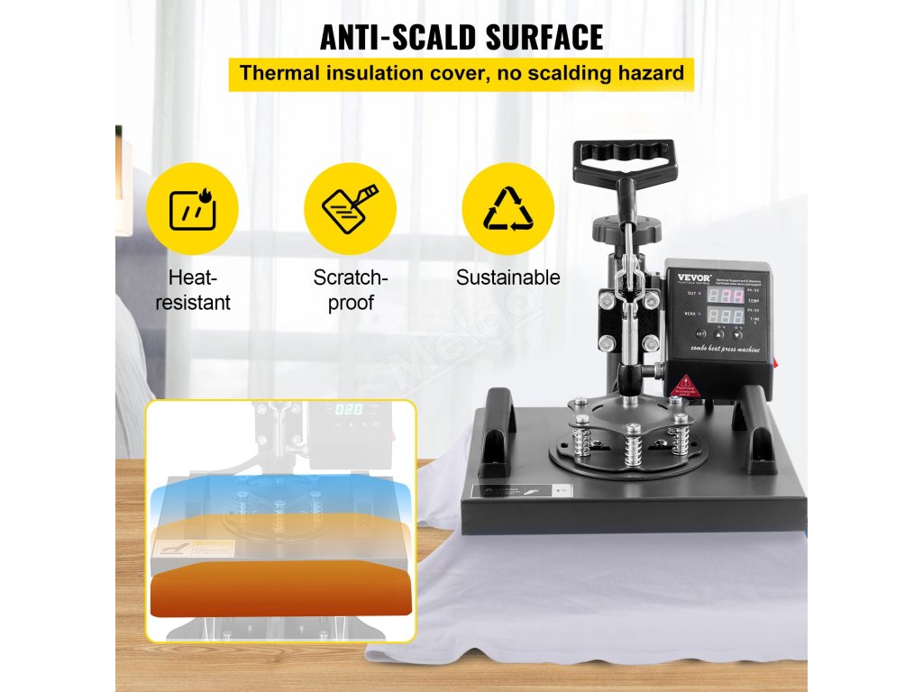 Tento tepelný lis s teflonovým povrchem snižuje možnost popálení při přenosu. Kromě toho se snadno čistí a může zajistit stabilnější tisk. Je také vybaven uzemňovacím vodičem pro bezpečný provoz.