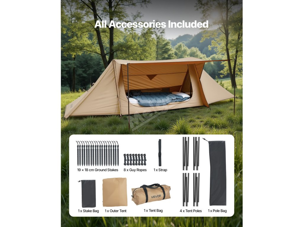 | Typ | Trojuholníkový stan s tyčami |
