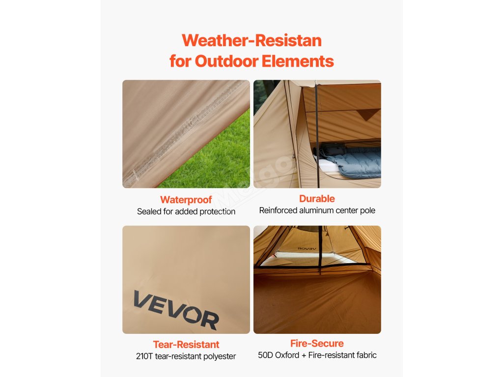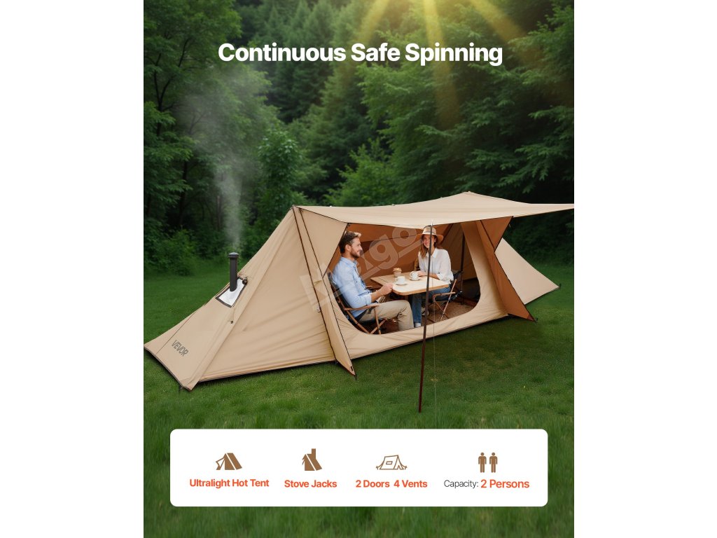 Vyzkoušejte horký stan s tyčemi - je určen pro outdoorové táborníky, kteří dávají přednost bezpečí a pohodlí. Zesílené podpěrné tyče zajišťují silnou odolnost proti větru, takže stan je spolehlivý i v náročném počasí. Prostorný prostor nabízí dostatek místa pro rodinné vaření, odpočinek a společenská setkání.