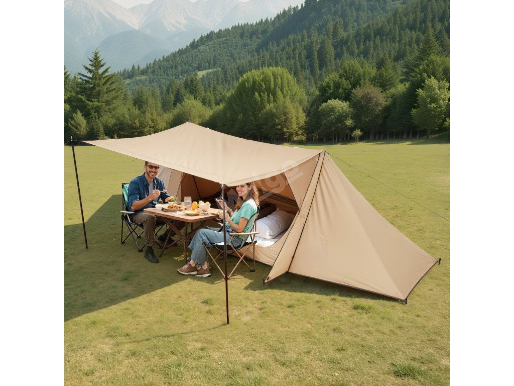Teplý stan s průvlakem na komín, nepromokavý, 2 tyče, pro 2 osoby