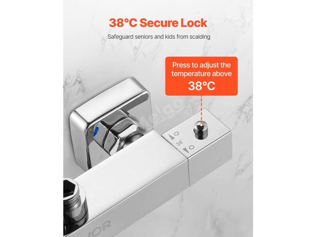 Termostatická sprchová baterie 38℃ zámek, dvě montážní otvory, chrom
