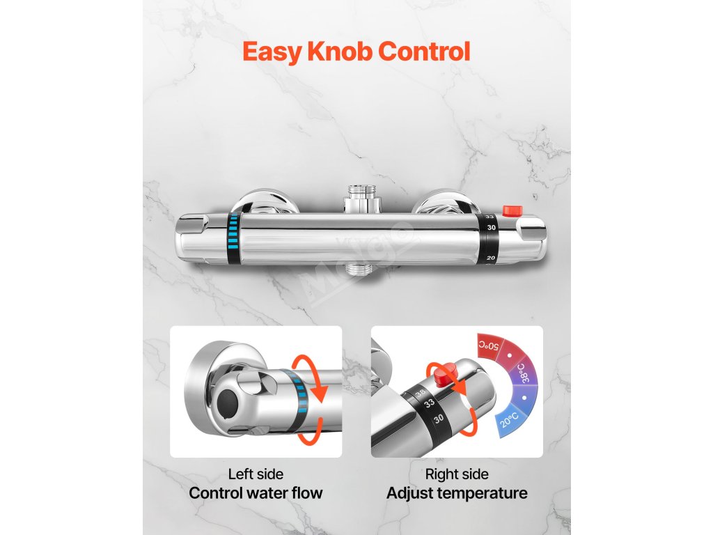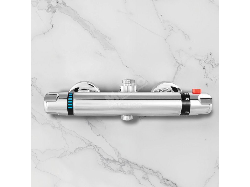 Termostatický směšovací ventil VEVOR je vybaven dvěma knoflíky pro ovládání teploty i průtoku. Ať už dáváte přednost jemnému oplachování nebo silnému proudu, při každém sprchování poskytuje stabilní výstup vody. Dokonale splní potřeby vaší rodiny díky plynulému a spolehlivému výkonu.
