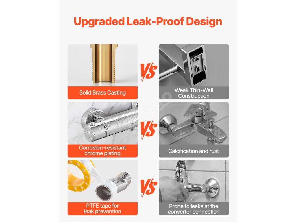 Tato koupelnová termostatická sprchová baterie s masivním mosazným ventilem si hravě poradí s vysokým tlakem vody, netěsnostmi i prasklinami. Povrchová úprava chránící proti korozi si zachovává svěží vzhled pro dlouhodobé používání. Je navržena tak, aby při každém sprchování poskytovala stálý a spolehlivý průtok vody.