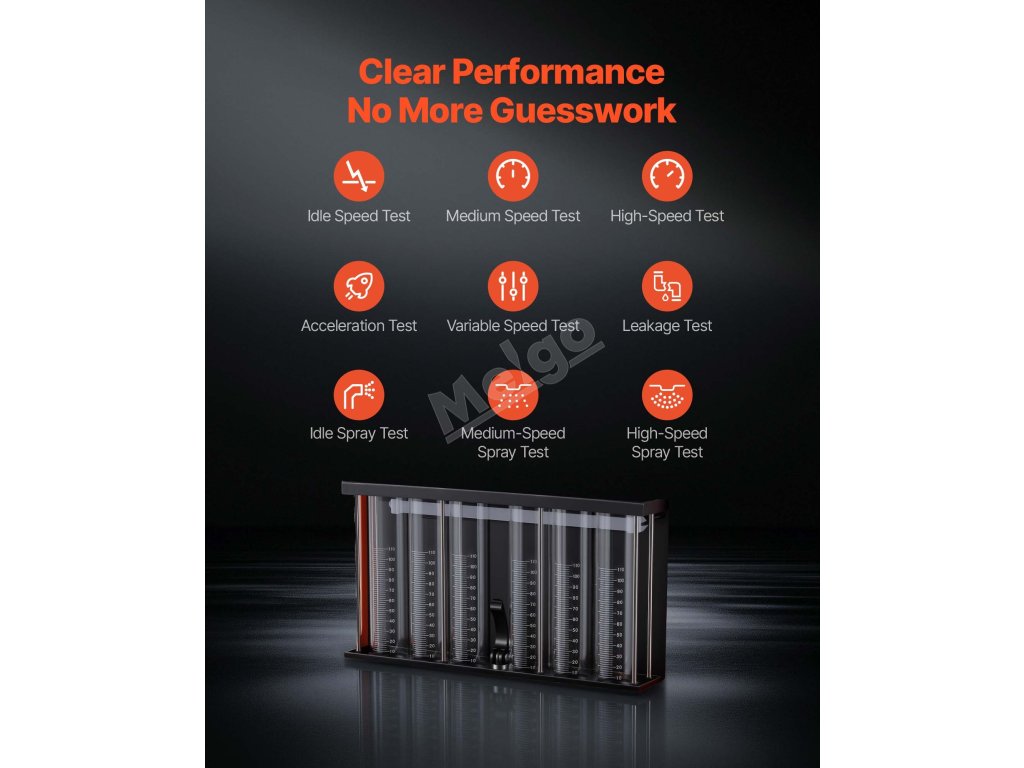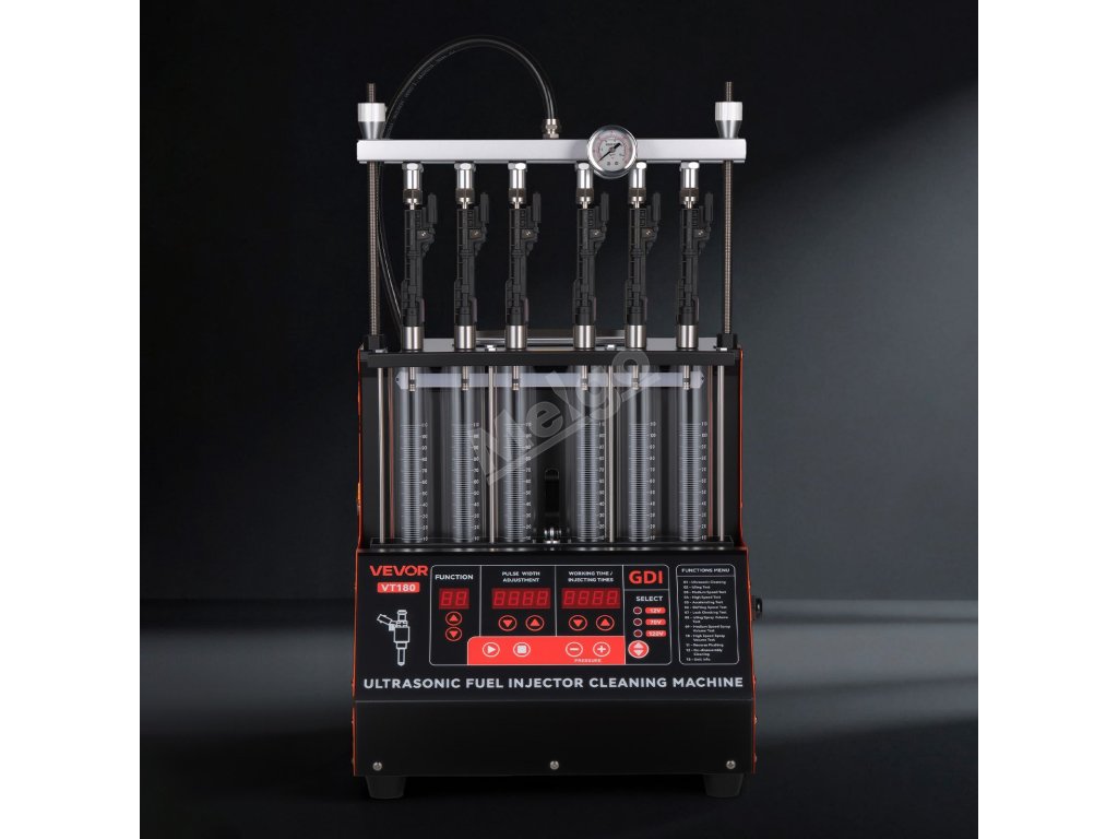 Testujte současně 6 vstřikovačů paliva. Náš čistič vstřikovačů umožňuje snadno sledovat rozprašování, kapání, ucpávání, úhel rozprašování a rovnoměrnost.