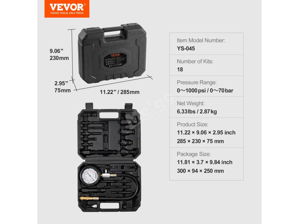 Tester komprese dieselového motoru 0-1000 psi, 18 dílů, adaptéry