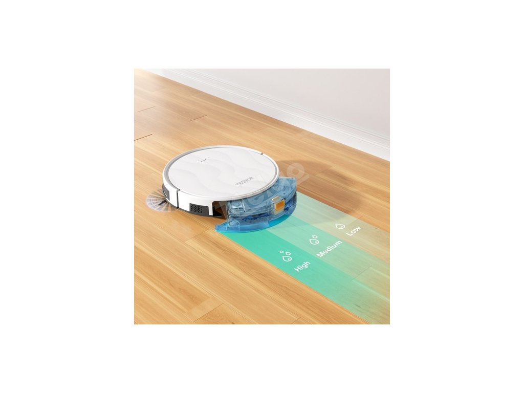 Kromě výkonné funkce vysávání využívá robotický vysavač Tesvor M2 nejmodernější technologii vytírání a je vybaven vysoce kvalitní elektronickou vodní pumpou a nastavitelným třístupňovým systémem uvolňování vody pro optimální úklid.