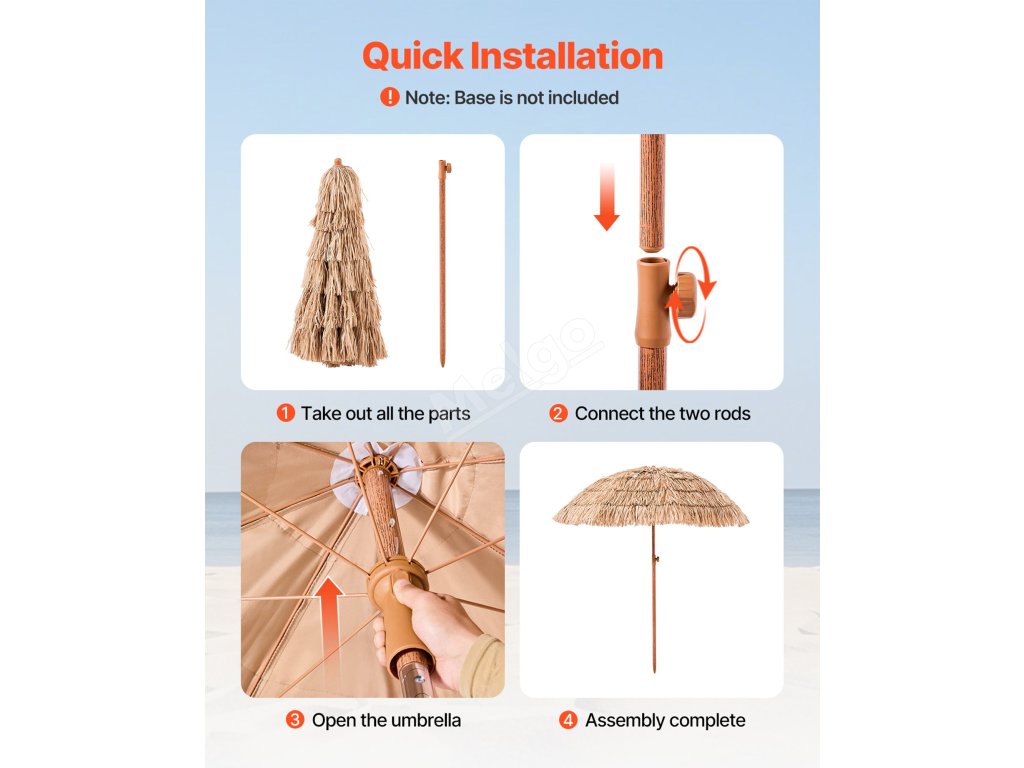 Náš slaměný slunečník je vybaven jasnými pokyny a tlačítkovou konstrukcí pro rychlé nastavení. Můžete ho postavit a užívat si stínu během chvilky.