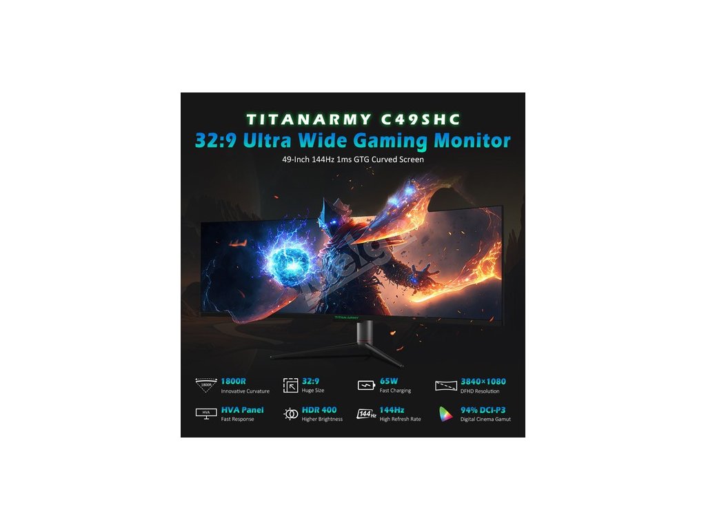 TITAN ARMY C49SHC 49" herní monitor, 3840*1080, 144Hz, PIP/PBP, adaptivní synchronizace, HDMI/DP/USB-C/USB-B/USB-A, 65W reverzní nabíjení