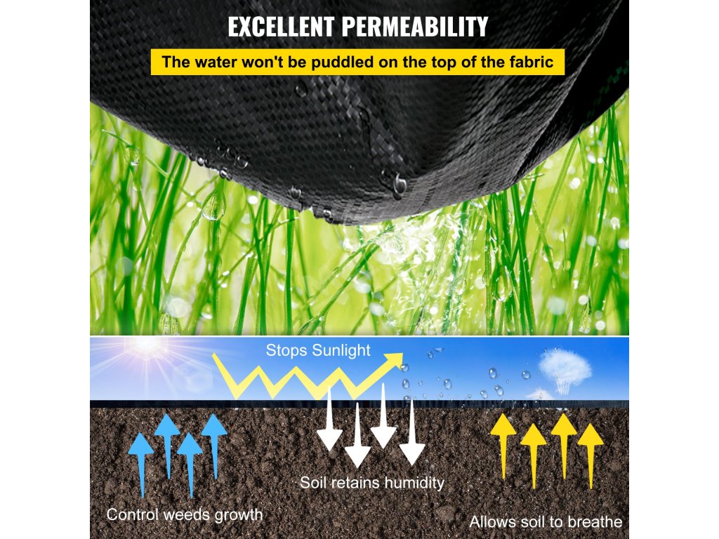 Tkanina blokující plevel dokáže zadržet půdní vlhkost a zlepšit teplotu půdy, čímž vytváří výborné podmínky pro urychlení rozkladu organických látek v půdě a podporuje množení rostlin.
