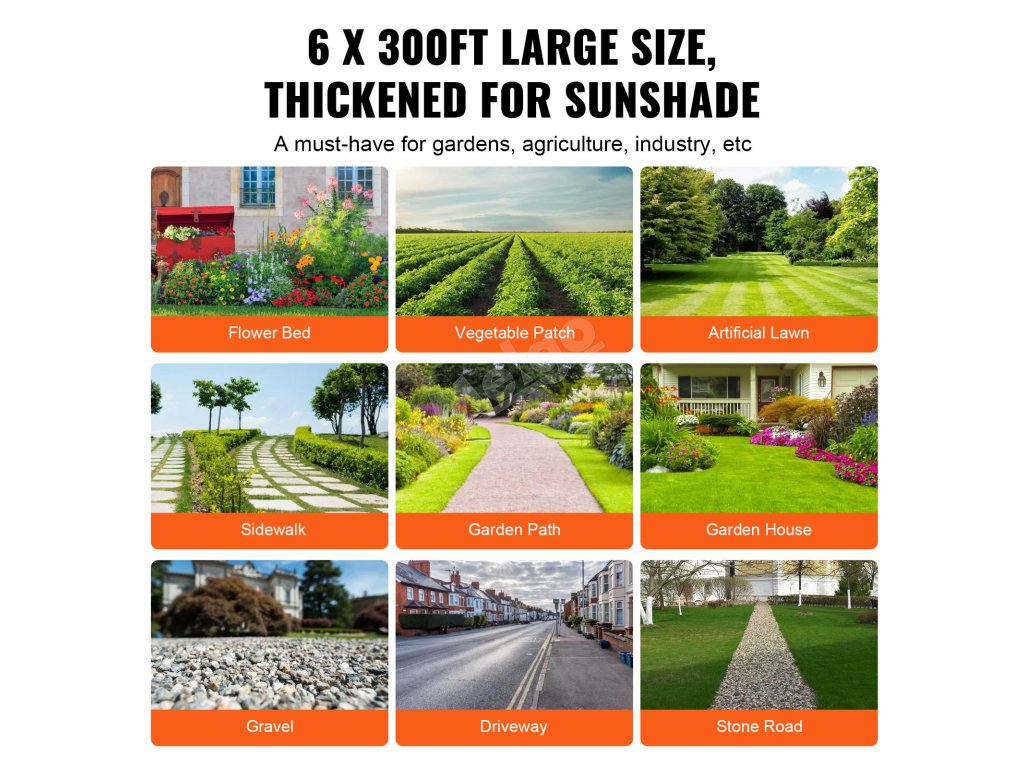 Rozlučte se s tvrdohlavým plevelem! Tkaná bariérová tkanina VEVOR 6x300 stop, 3OZ s vysokou hustotou se může pochlubit výjimečnou propustností a prodyšností a zároveň vynikající odolností proti roztržení, korozi a erozi. Zlepšuje zdraví půdy tím, že kontroluje růst plevele, a spolehlivě chrání zahradu.