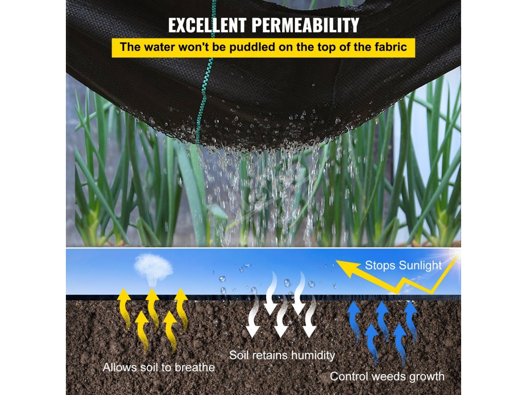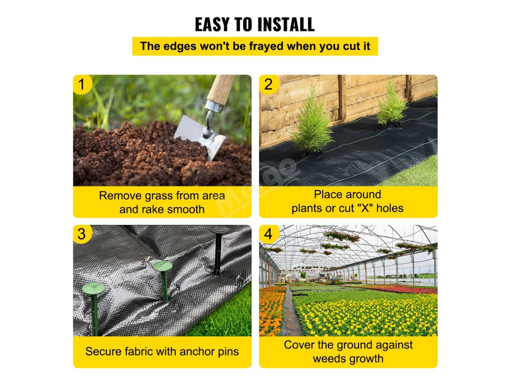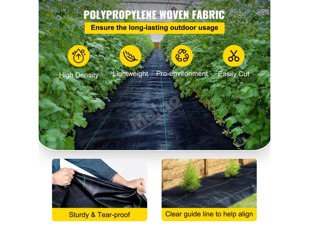 Odolná zábrana proti plevelu je vyrobena z prvotřídního polypropylenového materiálu vysoké hustoty, který je dostatečně pevný pro dlouhodobé používání. Kromě toho je lehká pro přepravu a snadno se stříhá pro použití.