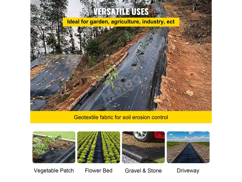 Tkanina na hubení plevele se široce používá pro zeleninové záhony, květinové záhony, zahradní kultury, umělé trávníky, štěrkové a kamenné dlažby, příjezdové cesty atd.