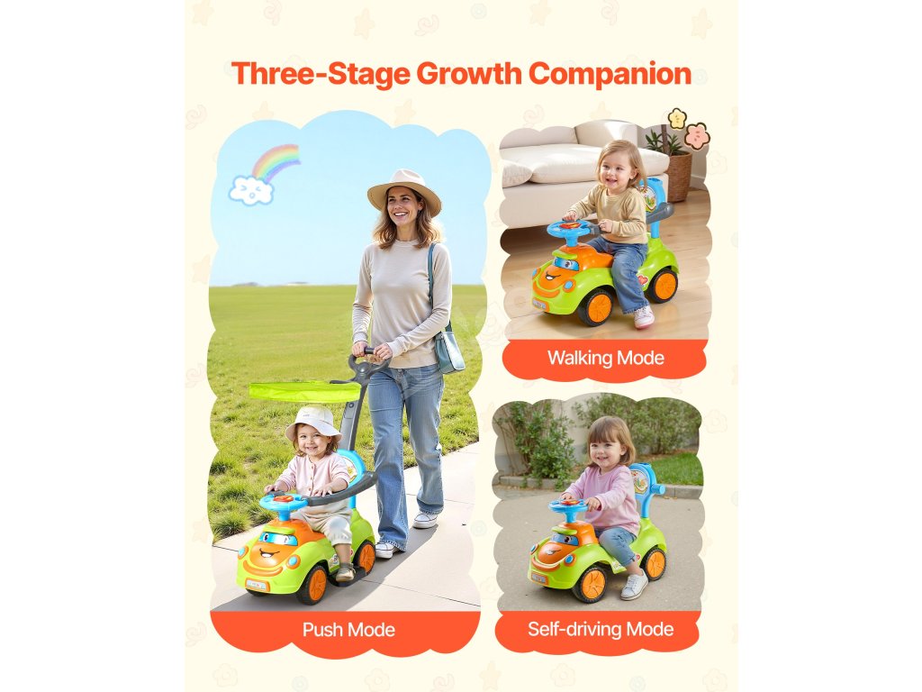 Jedno autíčko pro tři klíčové vývojové fáze - režim tlačení odlehčuje rodičům, režim chůze posiluje důvěru a režim jízdy podporuje objevování.