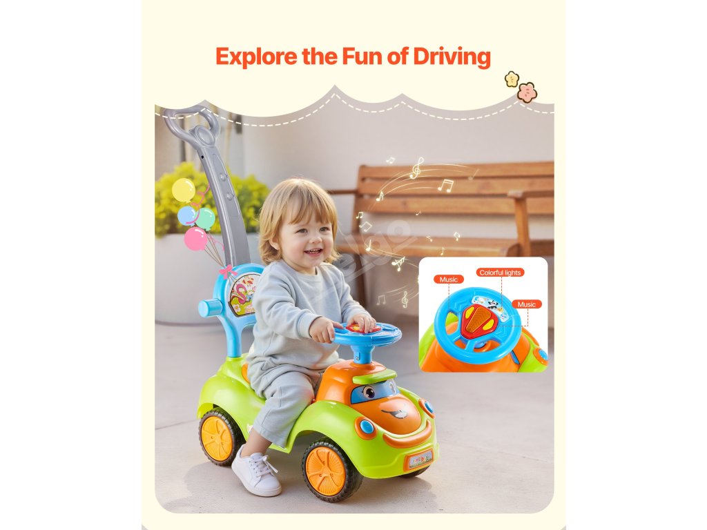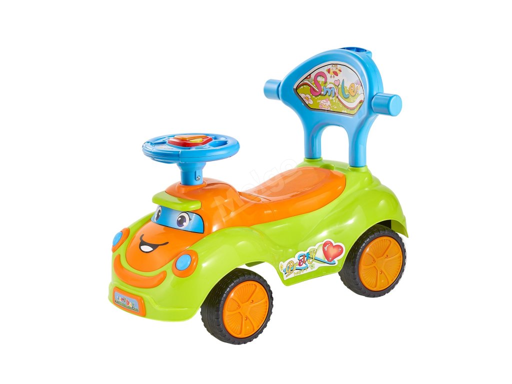 Hudební rytmy a barevná světla autíčka stimulují sluchový a zrakový vývoj dítěte. Jediným klepnutím dítě aktivuje zábavnou světelnou a zvukovou show.