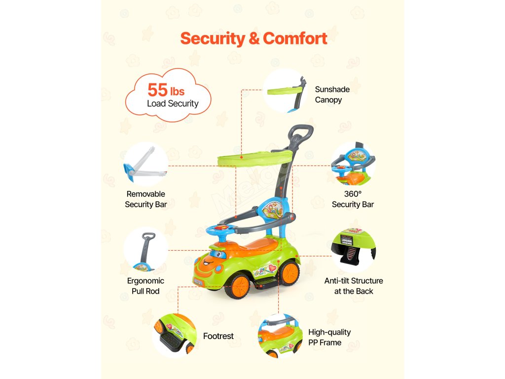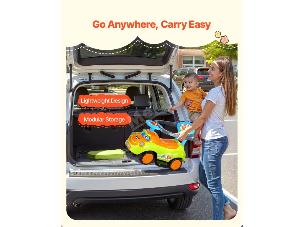 Bezpečnost vašeho dítěte je vždy zajištěna, ať už při chůzi nebo jízdě, od 360° protiskluzových ochran až po zadní protiskluzovou konstrukci našeho auta.