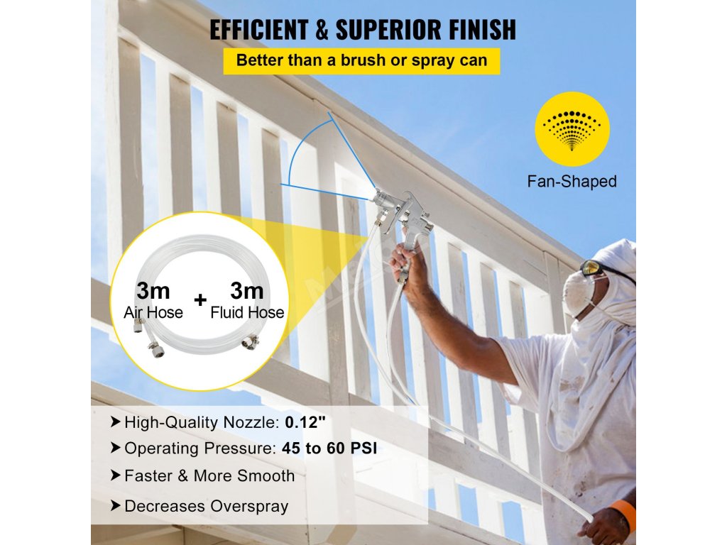 Tento postřikovač je ideální pro domácí použití včetně stolů, židlí, kol, okenic, plotů, dřevěných hraček, modelů, zahrad, garáží, oken, dveří atd.