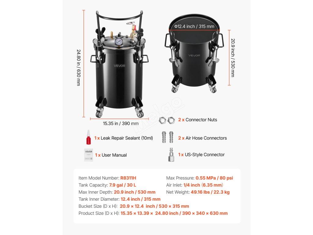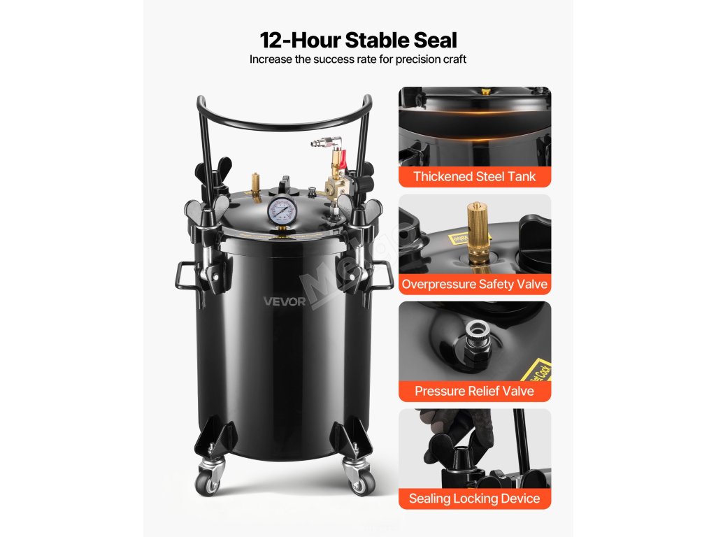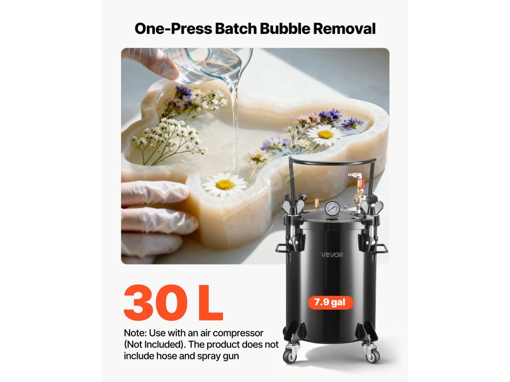 Tato nádržka na barvu s tlakovým hrncem o objemu 7,9 gal/30 l je určena k nalévání a umožňuje provádět více řemesel najednou. Vysokotlaký provoz eliminuje vnitřní bubliny pro hladší povrchy a detailní výsledky, zatímco jeho utěsněná konstrukce udržuje stabilní tlak pro umělce, kutily a studia.