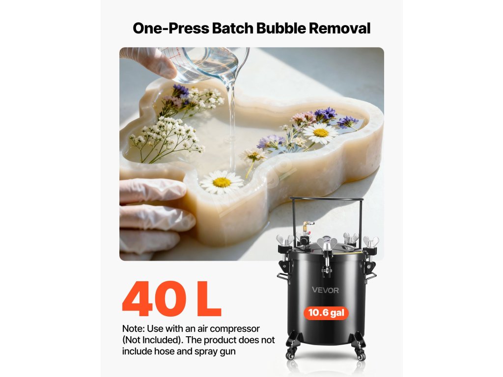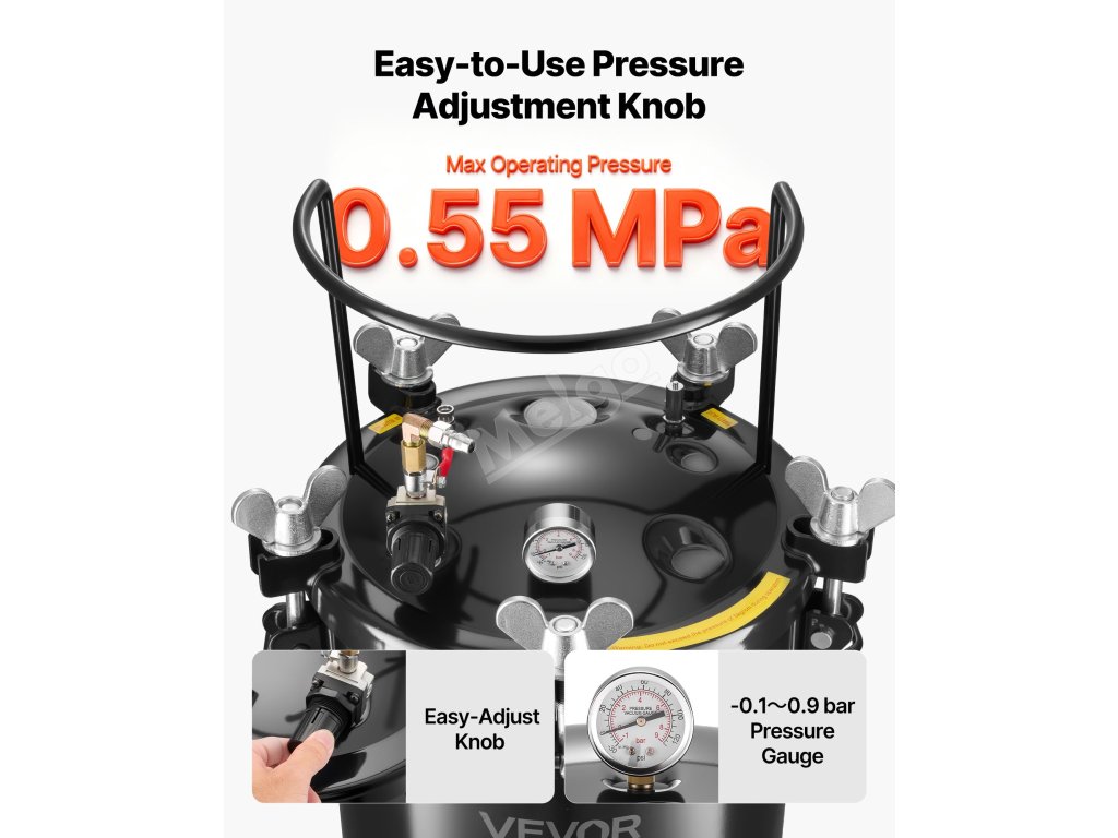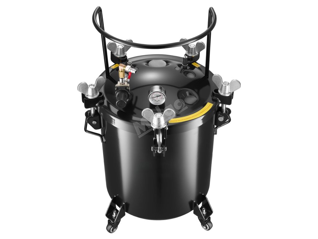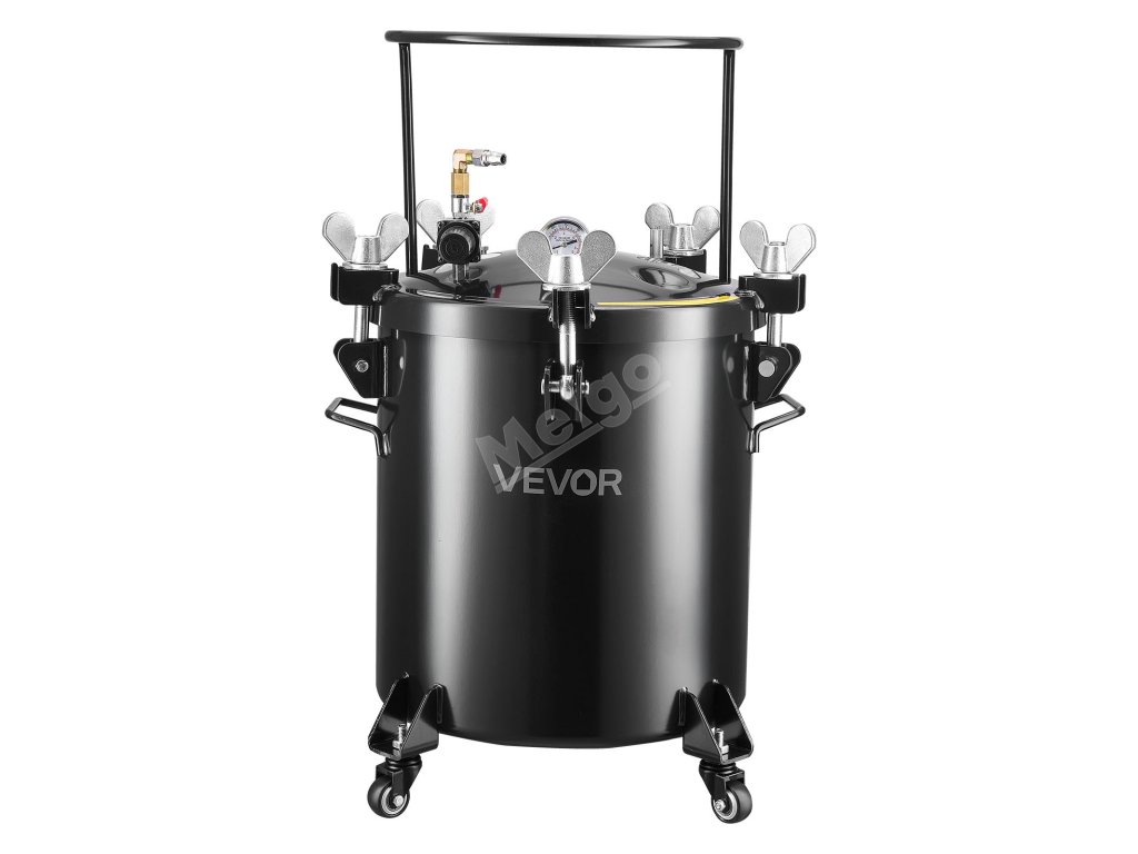 Tento tlakový hrnec na barvu o objemu 10,6 gal/40 l je určen k přelévání a umožňuje provádět více prací najednou. Vysokotlaký provoz eliminuje vnitřní vzduchové bubliny pro hladký povrch a jasnost detailů, zatímco utěsněná konstrukce udržuje stálý tlak pro kutily nebo umělce ve studiu.
