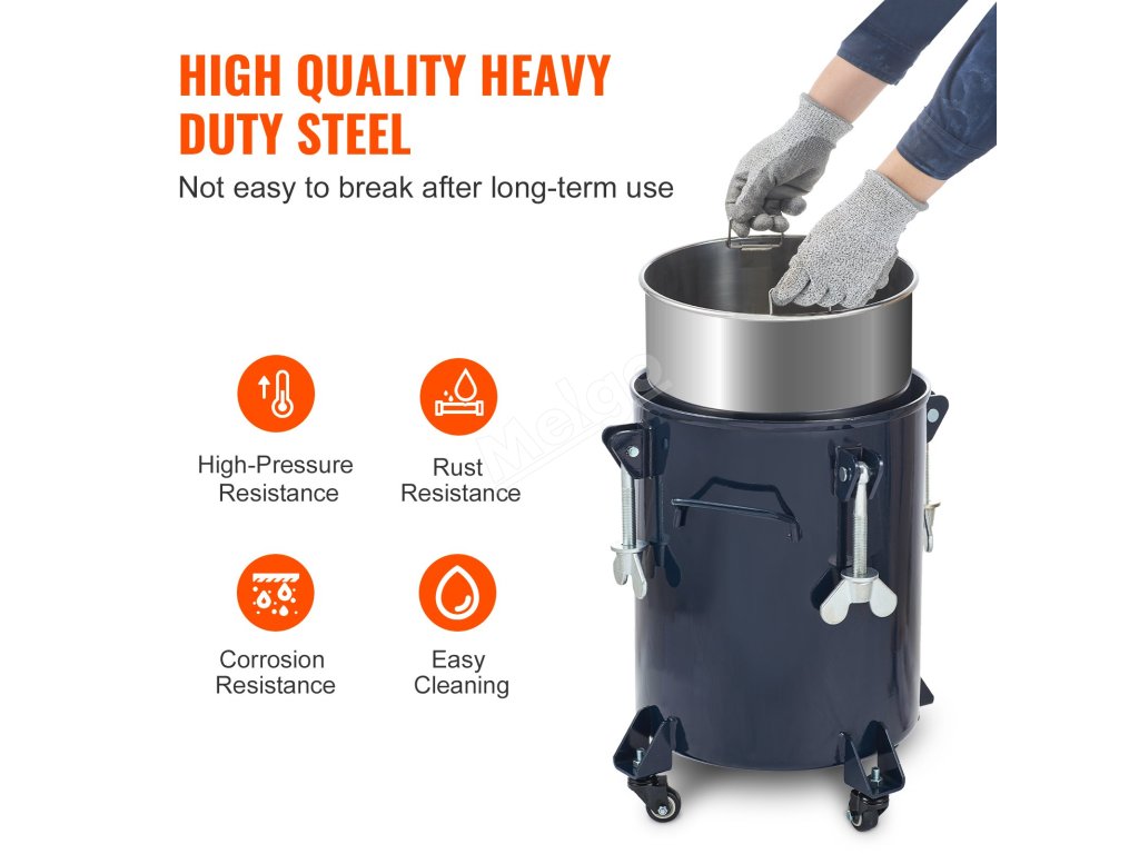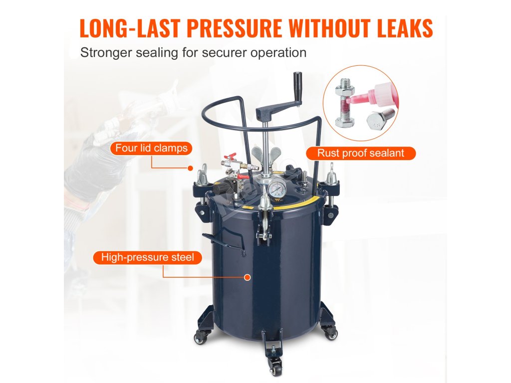 nádrž lze pevně utěsnit 4 svorkami víka. Kromě toho mohou také utěsnit těsnicí závit a zabránit korozi a rzi. Naše nádrž na barvu prošla vodotěsným testem bez úniku plynu.