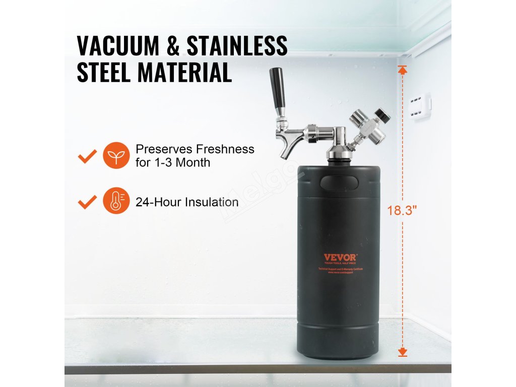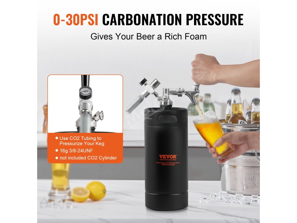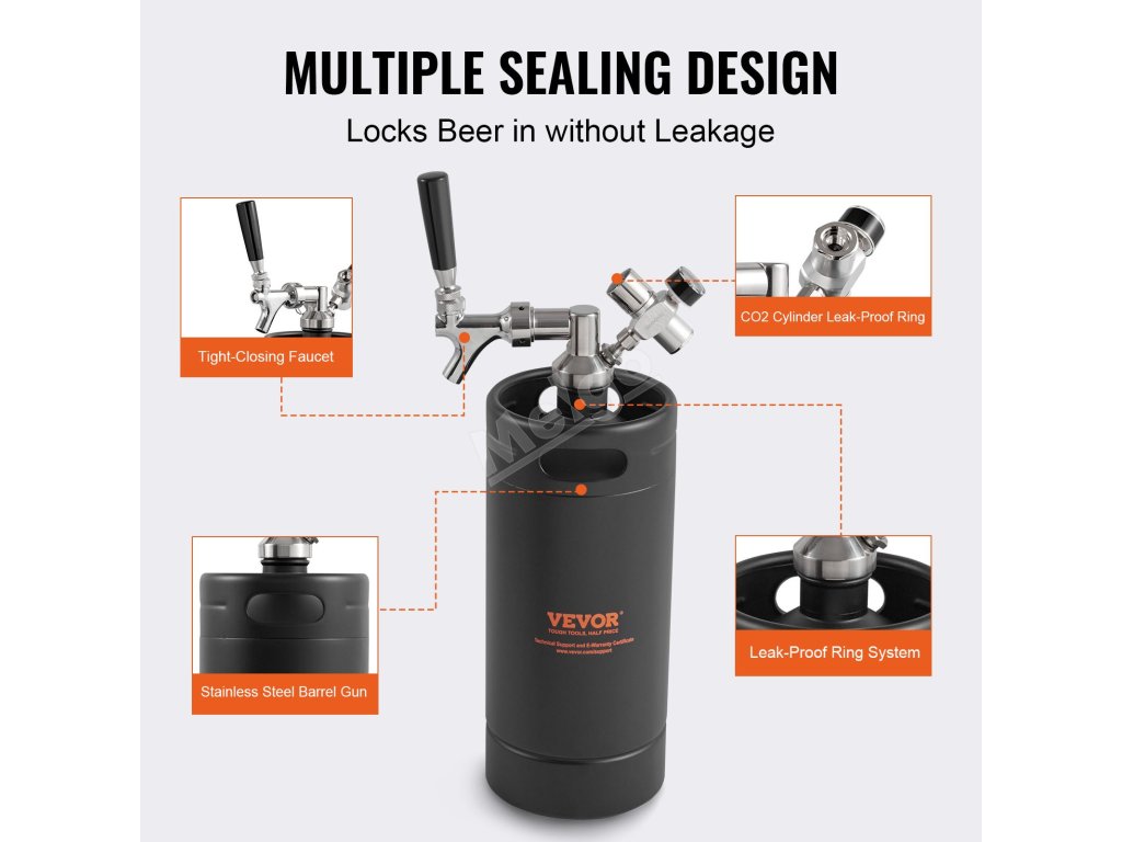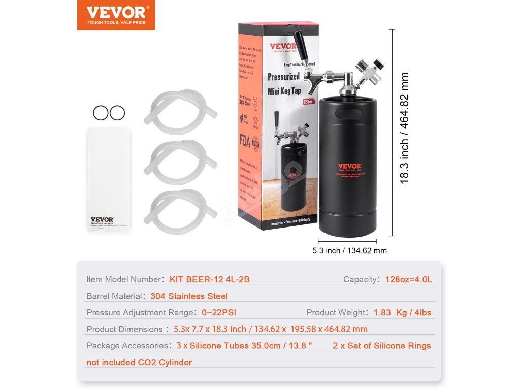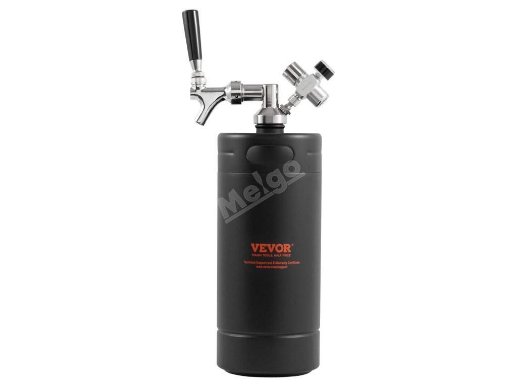 Miniaturní sud na sycené pivo o rozměrech 5,3 x 7,7 x 18,3 palce a objemu 128 uncí je vybaven pohodlným držadlem pro přenášení, takže je vhodný pro domácí setkání nebo kempování v přírodě.