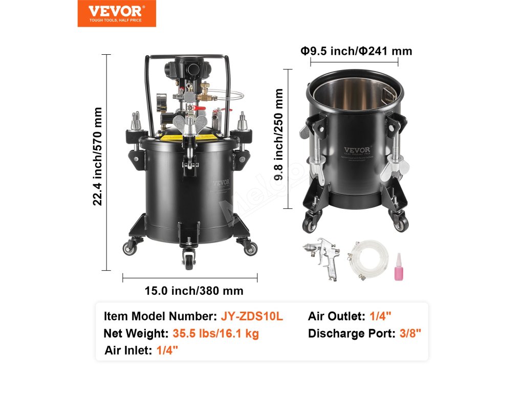 Tlakový zásobník na barvu 10 L/2.5 gal, 70 psi, s mícháním a pistolí