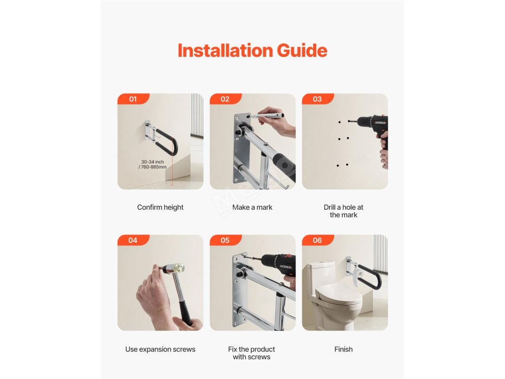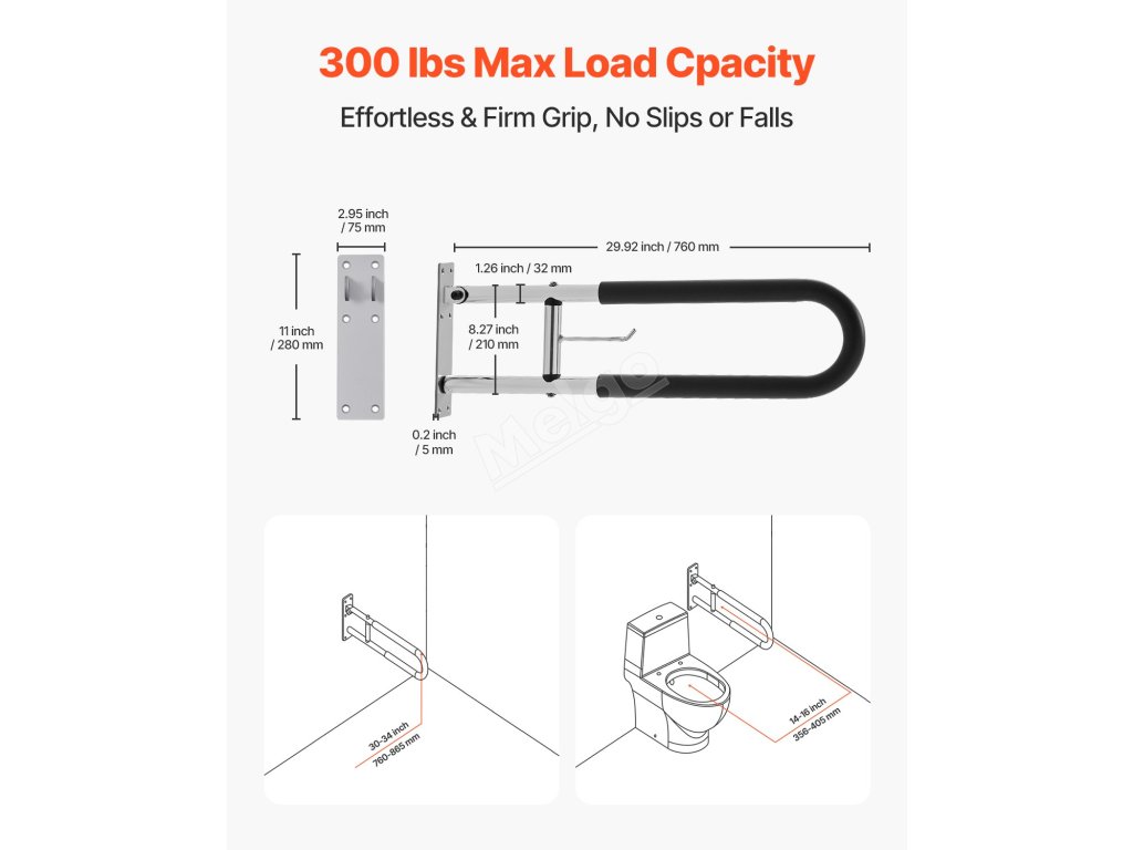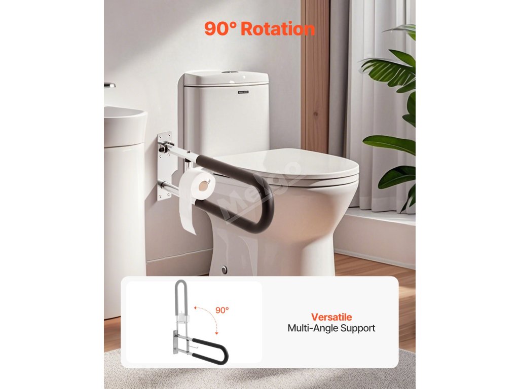 Naše výklopné bezpečnostné zábradlie na toaletu má robustnú nosnosť 300 kg a ponúka pomoc v spálni, kúpeľni, na toalete atď. Otáča sa v uhle 0°-90° a umožňuje nastavenie do vertikálnej polohy, čím šetrí miesto bez toho, aby sa znížila bezpečnosť. Stačí otočiť skrutky a ľahko získať potrebnú polohu.