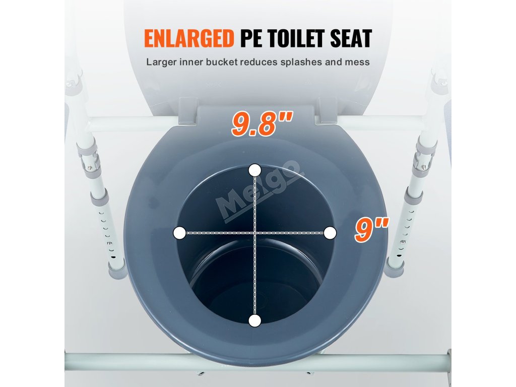 Toaletní židle, širší zvýšené sedlo, 7 poloh výšky, 5.8L, 350 LBS