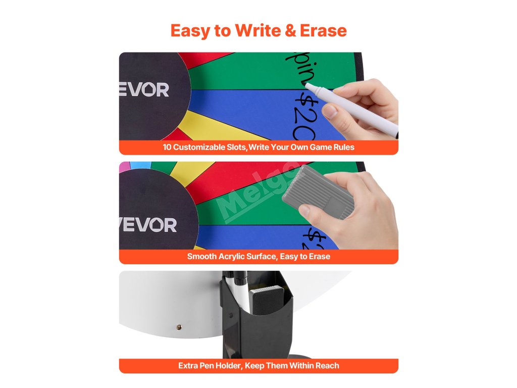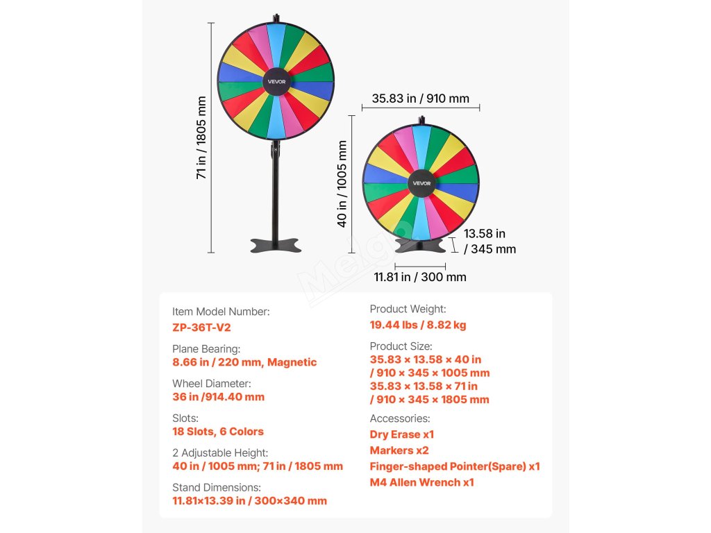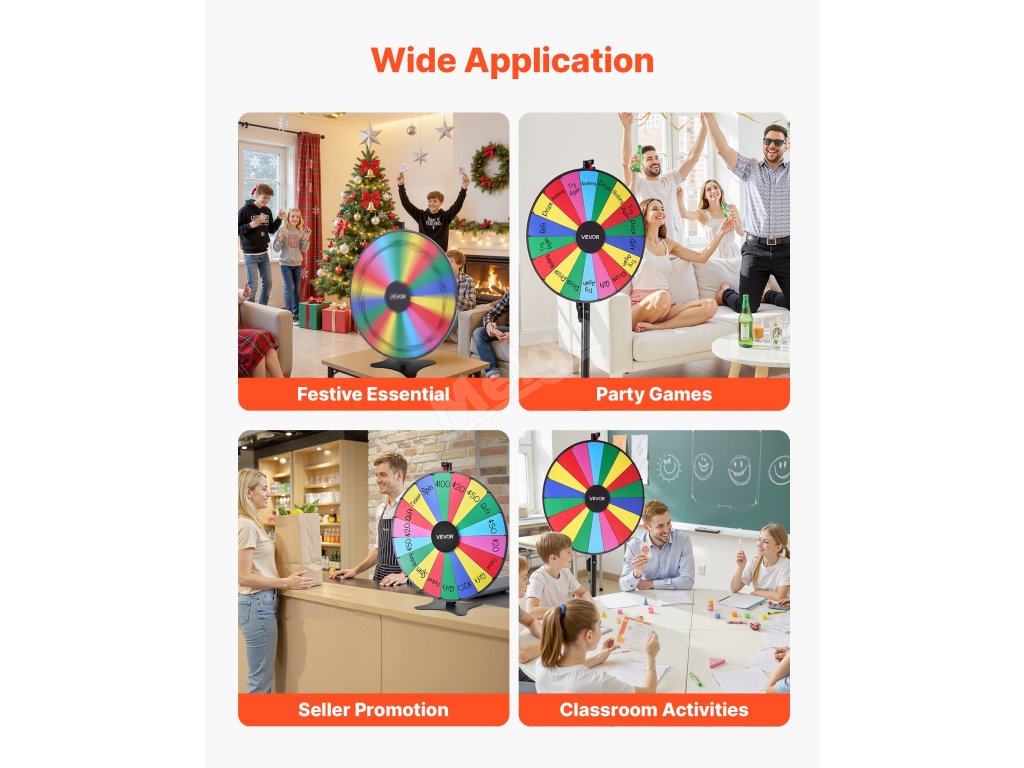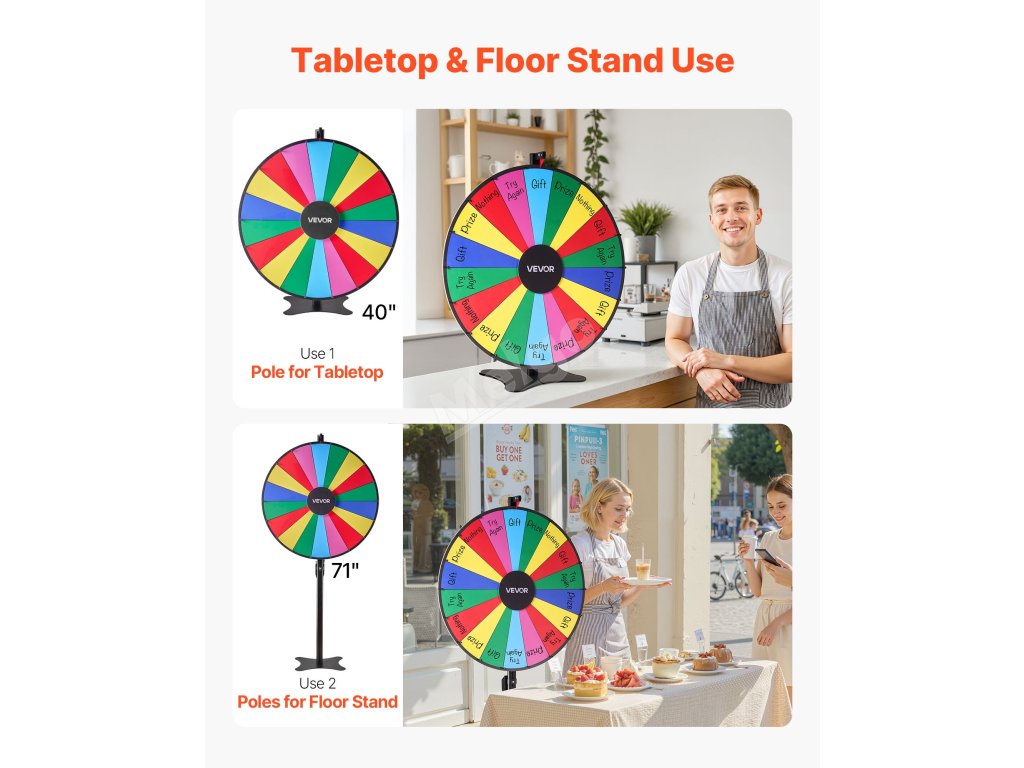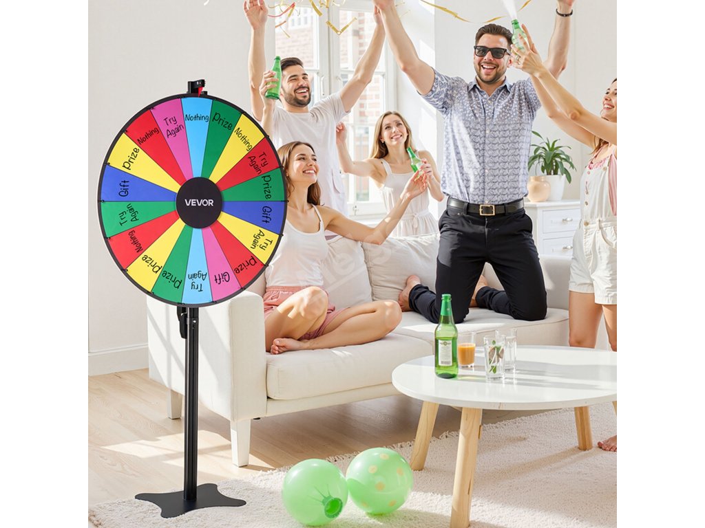 Přineste vzrušení na jakoukoli akci s naším univerzálním kolem s cenami! Díky přizpůsobitelným otvorům, plynulému otáčení a odolné konstrukci je ideální pro večírky, učebny, veletrhy a další akce. Je lehké a snadno se sestavuje, takže poskytuje nekonečnou zábavu pro všechny věkové kategorie.